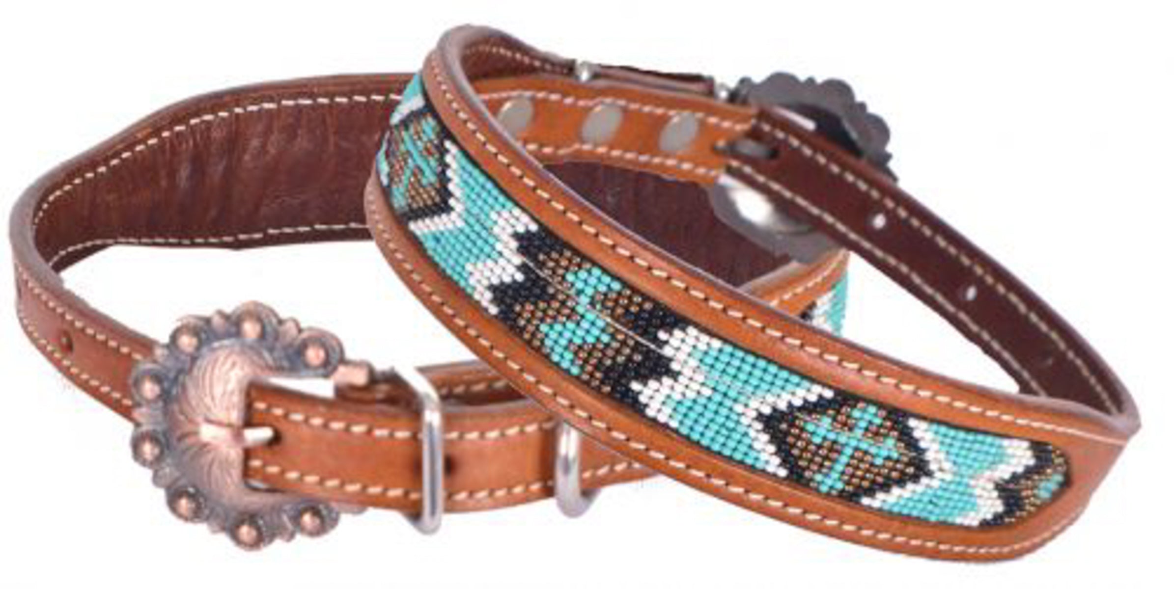 PRODUCT DESCRIPTION: Showman Couture™ Genuine Leather Dog Collar with Beaded Inlay & Copper Buckle
