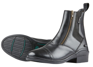 The Dublin® Evolution Double-Zip Front Paddock Boot is crafted of full-grain European leather and fitted with the Rider Comfort System (RCS) memory foam footbed. This comfortable paddock boot is also fully leather-lined to ensure long wear. A molded side wall provides extra ankle support and protection.