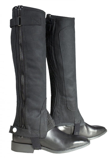 These half chaps form easily to the natural contour of the lower legs for a snug fit. A durable, full-length YKK® zipper between the stretch panels will keep the chap in place.