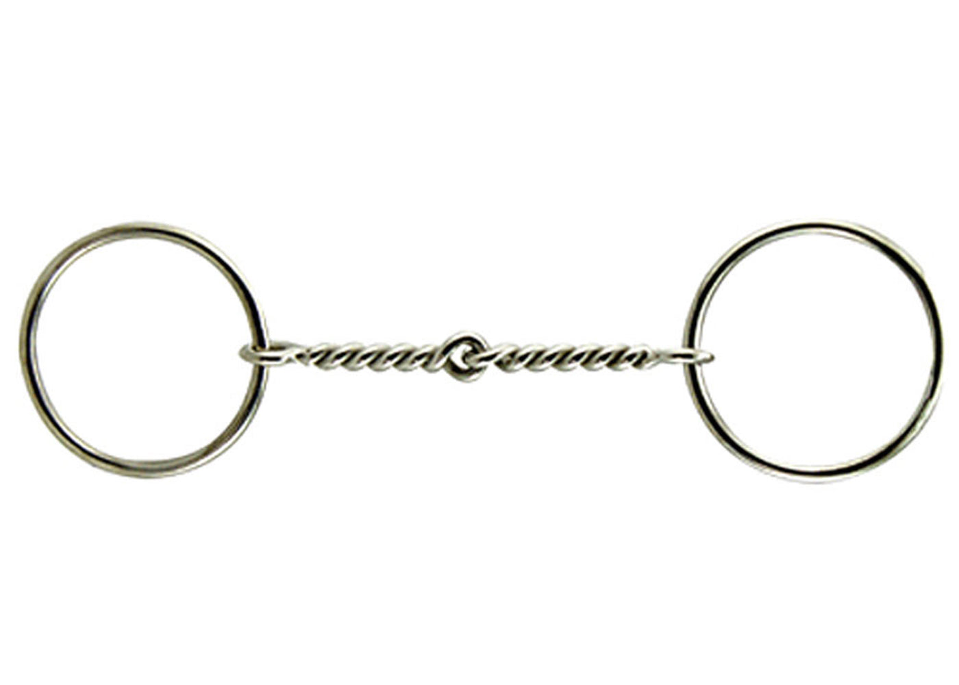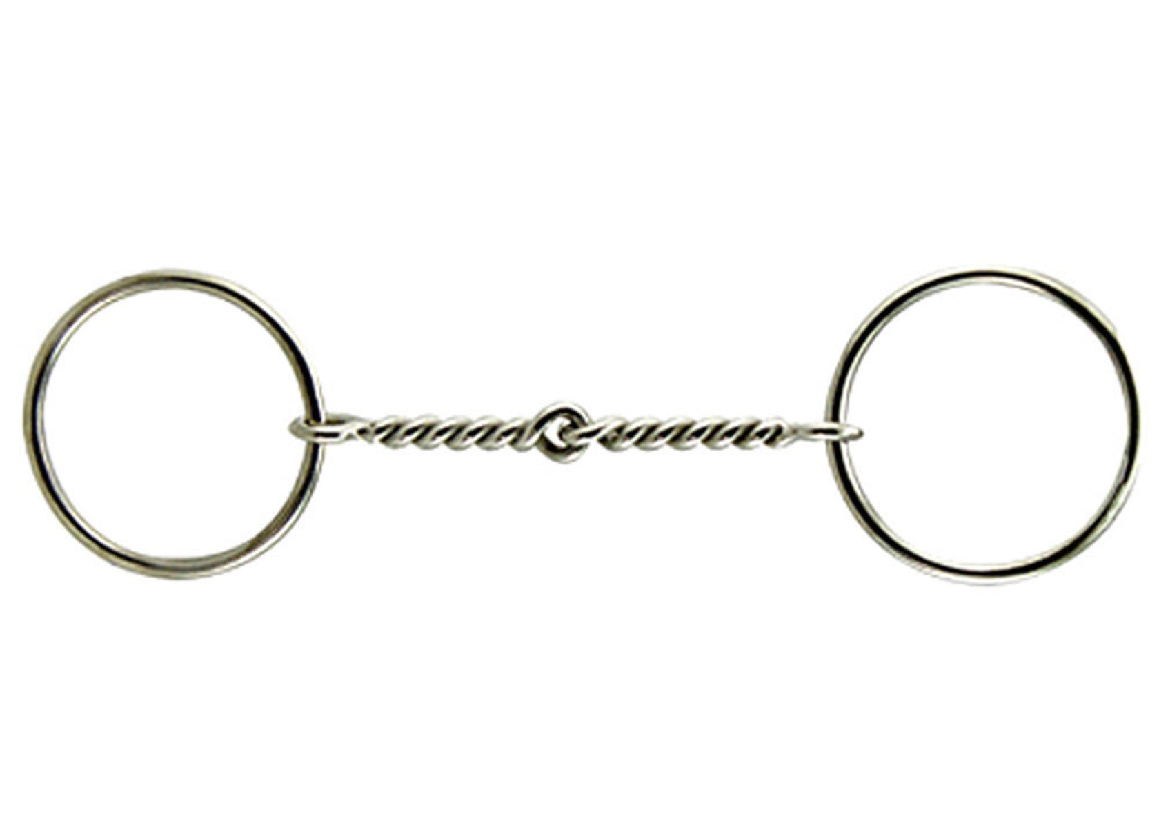 Malleable Iron Single-Row Twisted Wire Loose Ring Snaffle Bit has a 6 1/2" mouthpiece. Loose rings help prevent the horse from getting a fixed grab on the bit.