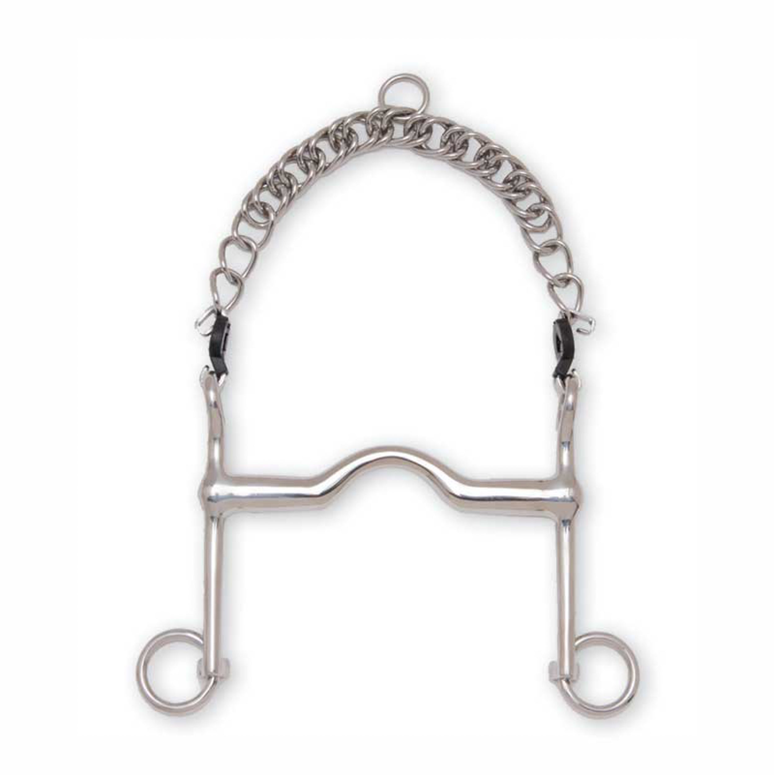 The Metalab Medium Port Short Shank Weymouth is a Level 4 curb bit. Made of stainless steel, it features a 16mm diameter mouth with medium port and short shanks. Curb chain and hooks included.