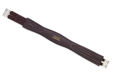 The Ovation® Alpha-Gel Comfort Girth has a chafeless contoured design to avoid contact with your horse’s elbows. The waffled neoprene outer won’t pinch or bind, while Alpha-Gel cushions inside help to alleviate pressure. This girth has stainless steel roller buckles to allow easy adjusting. Double elastic at one end.