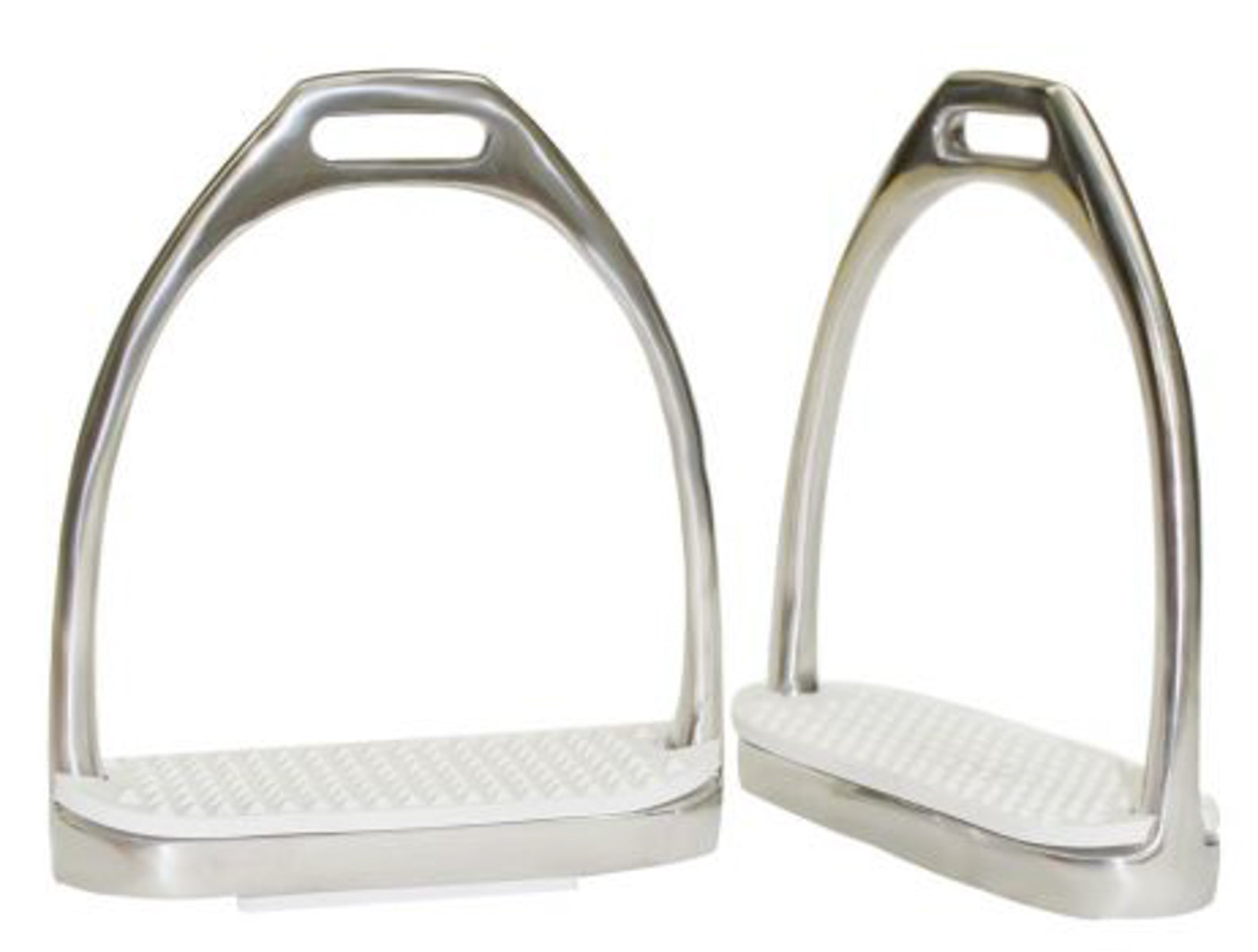 Showman® 4 3/4" Stainless Steel English Irons are classic Fillis-style stirrups appropriate across disciplines.