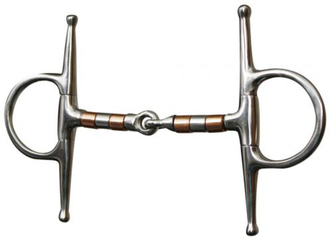 PRODUCT DESCRIPTION: Showman® Stainless Steel & Copper Roller Full Cheek Snaffle Bit