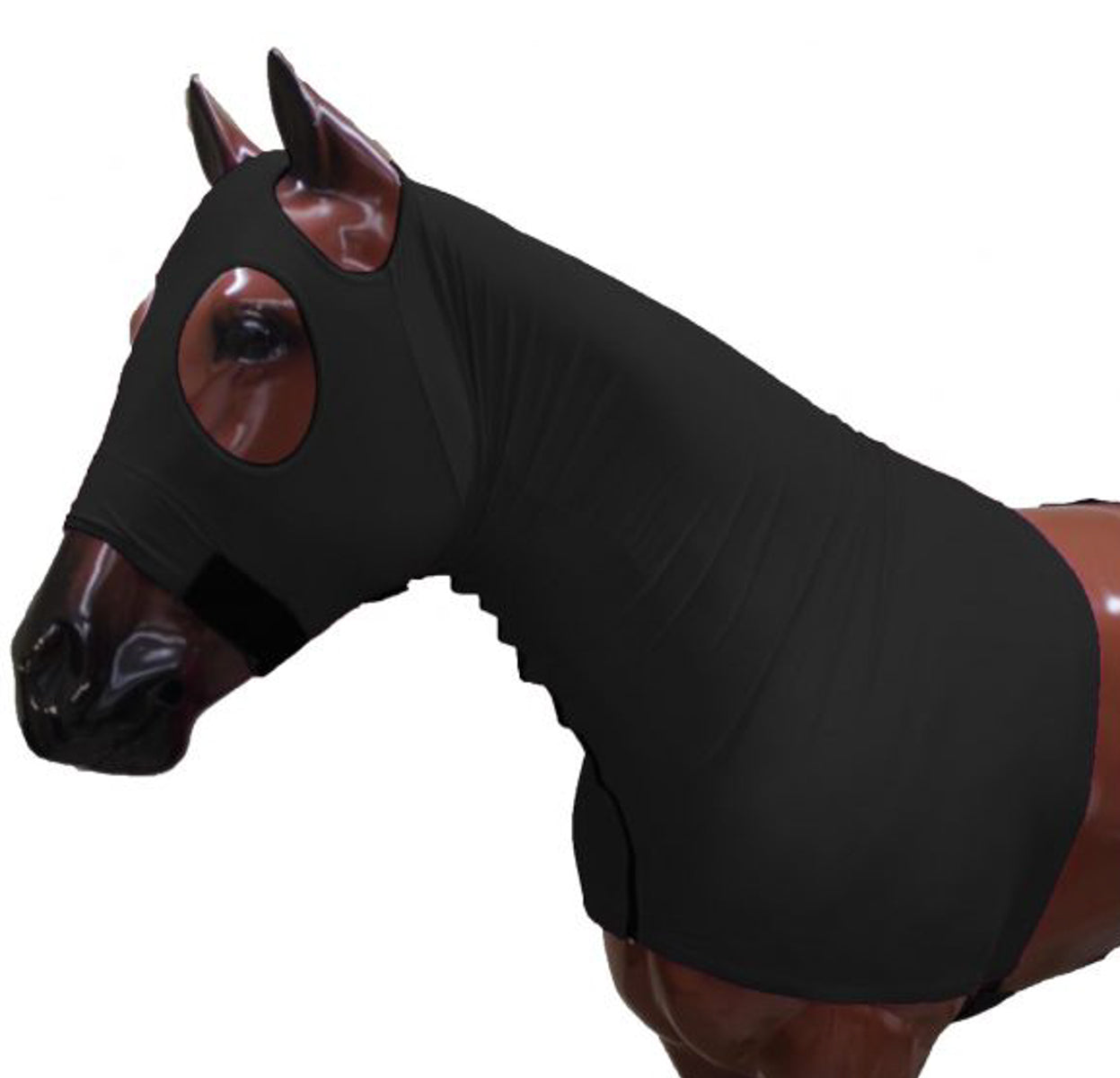 Showman® Hood with Zippered Neck keeps mane braids/bands neat before a show.