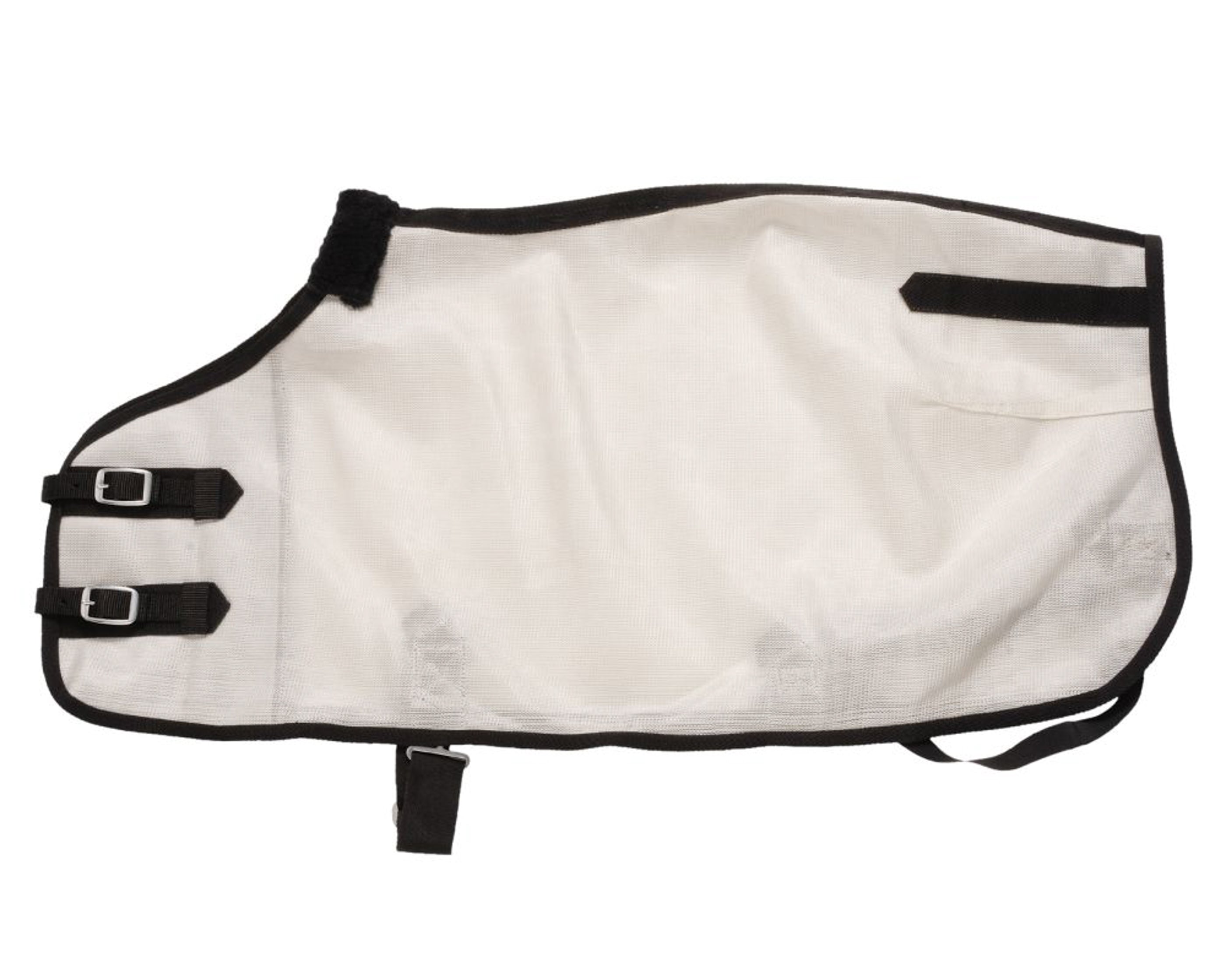 Ideal for long, sunny show days, trailering and horse camping, the Tough1® Mini Lightweight Fly Scrim offers your horse protection from pesky flies and hot sun. The lightweight mesh is reinforced with nylon edging and straps. This sheet is complete with fleece wither protection to help prevent rubs and hip darts for an excellent fit.