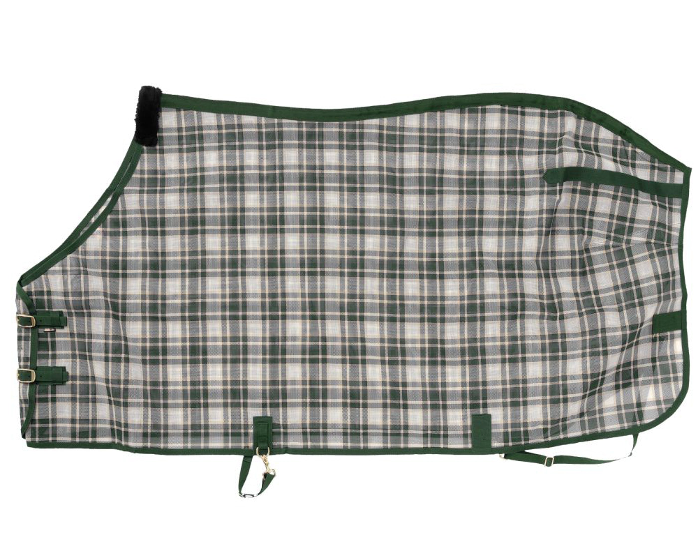 This Tough1® PVC-Coated Mesh Tri-Shield Fly Sheet is designed to protect your horse from flies, sun and dust. It is made from durable, tightly woven 1000 denier PVC-coated mesh. This sheet helps keep your horse cooler by preventing the sun from beating down on the body while allowing ample airflow. Tri-Shield sheets are comfortable, non-abrasive, mildew-resistant and easy to clean.