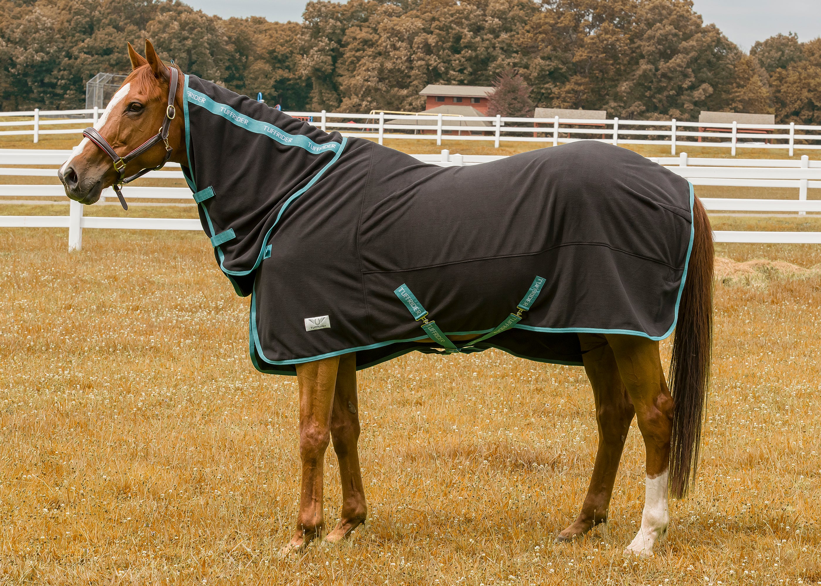 For the the horses that stay active in the winter, the Tuffrider® Cooler Sheet Combo is a smart full-coverage option. Cooling down and warming up is are important aspects when exercising horses for proper soft tissue and muscle action. Fleece coolers wick moisture away from the body for evaporative cooling, bringing your horse’s body temperature down post workout and help warm up before their workout. This combo cooler allows for full coverage for horses that have a full body sweat.