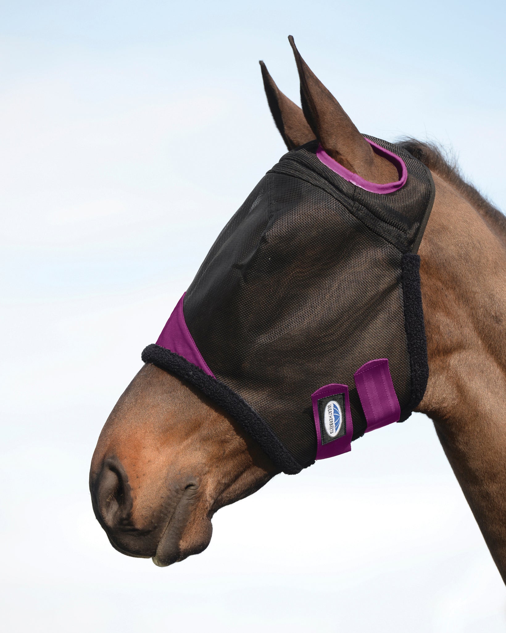 The WeatherBeeta® ComFiTec™ Durable Mesh Mask with soft fleece binding protects your horse’s eyes from insects while allowing full visibility. The durable mesh also provides 60%+ blockage of ultraviolet rays; double darts provide a superb fit over your horse’s face and eyes. Stretch fleece at the poll offers added comfort. Adjustable, double-touch tape tabs allow ease of use and a secure fit.
