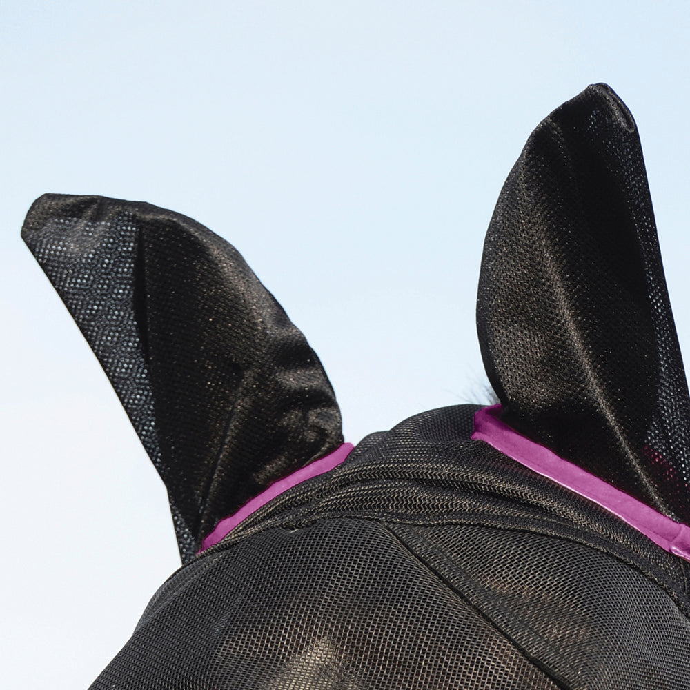 The WeatherBeeta® ComFiTec™ Durable Mesh Mask with Ears protects your horse’s eyes from insects while allowing full visibility. The durable mesh also provides 60%+ blockage of ultraviolet rays; double darts provide a superb fit over your horse’s face and eyes.