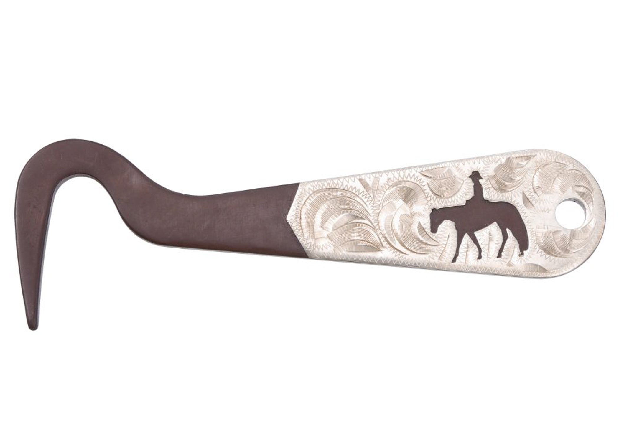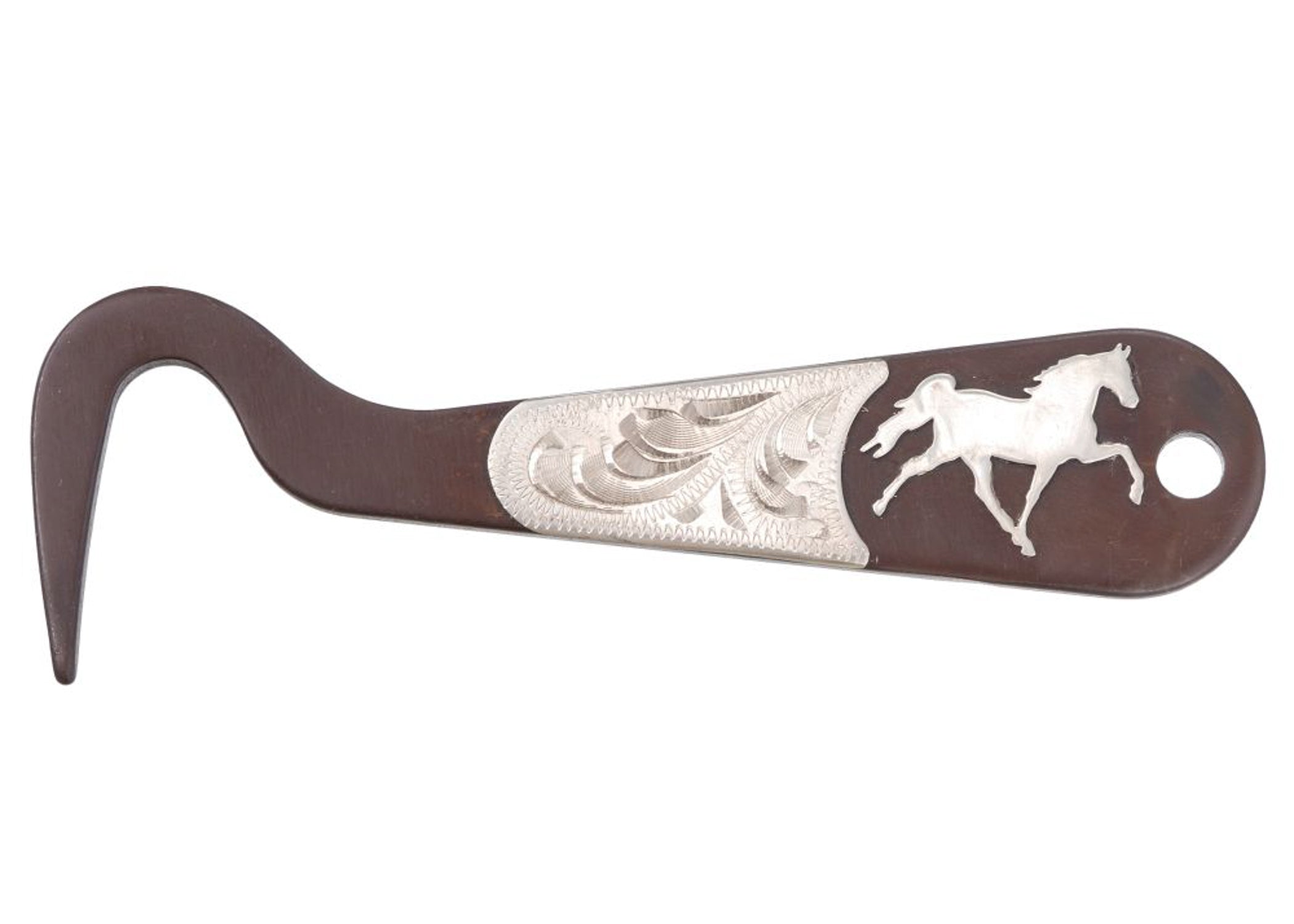 Tough-1® Antique Brown Hoof Pick features a gorgeous antique brown finish and features an engraved silver overlay design. It's the perfect item for a gift or an award!