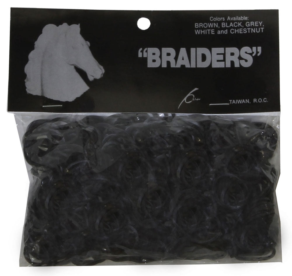 Convenient Braid Binders keep mane braids secure when you need them to, then pull out without fuss when the show is over. They're also an easy and economical way to train a horse’s mane to lie on one side. Available in shades to match any horse’s mane.