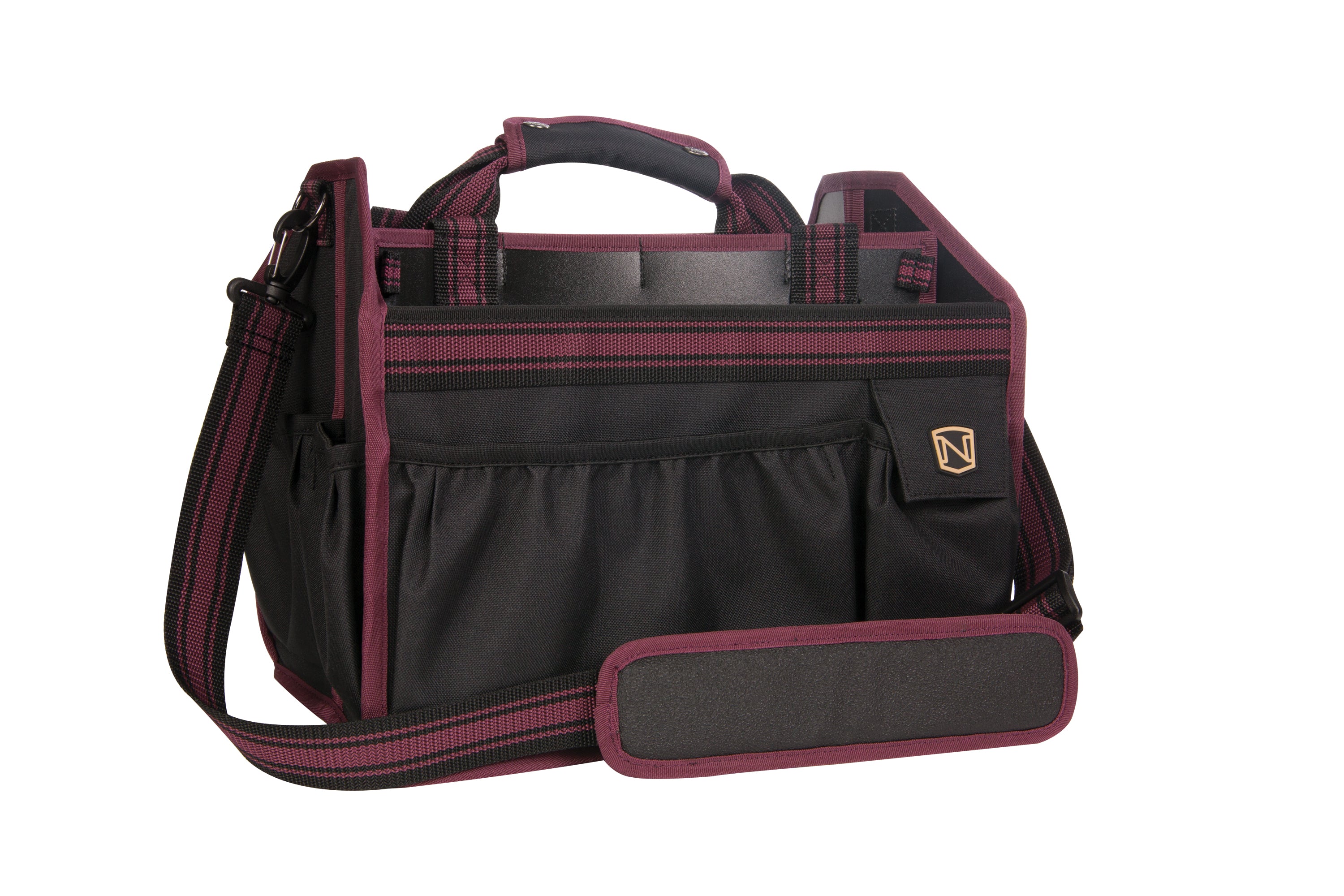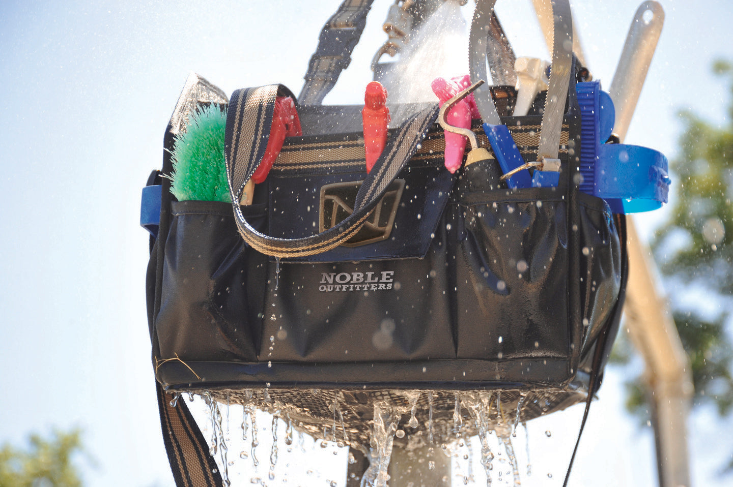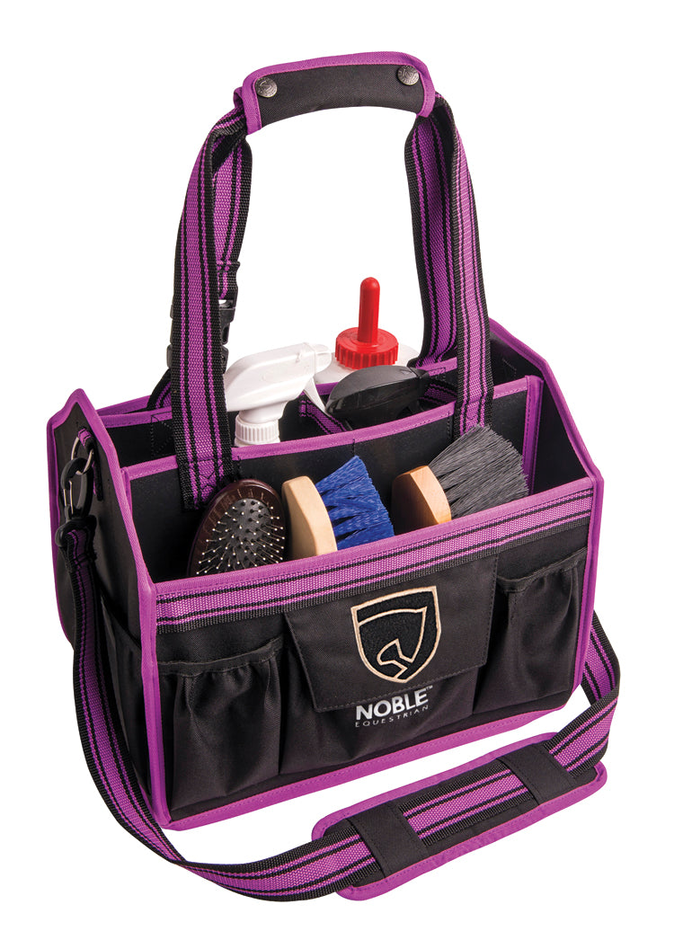 The Noble Equestrian™ EquinEssential™ Tote is an organizational dream for riders. Collapsible for convenience, it’s easy to carry and simple to keep clean. This must-have grooming tote will make you a model of efficiency! It’s a unique hybrid with a wipe-clean hard shell plastic interior and a durable, water-repellent 600 denier polyester canvas fabric exterior. Many perfectly sized compartments, pockets and dividers keep all your tools, sprays, sponges and shampoos neatly organized.