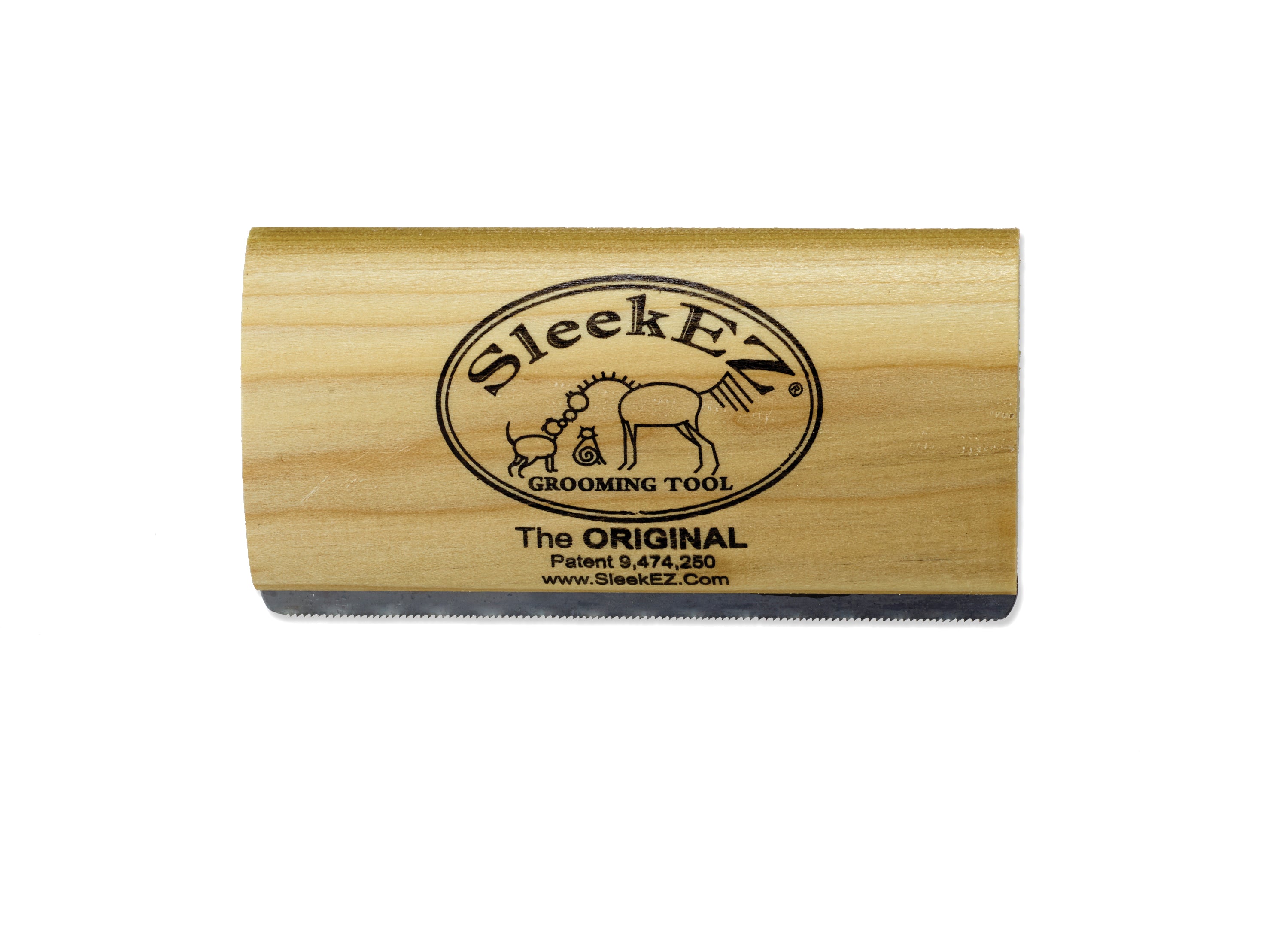 The 5" SleekEZ® is so simple and effective in removing loose hair and dirt from your horse that you’ll love it year-round for grooming. Ideal for shedding season, it won’t irritate your horse as it reveals a sleek coat, and it works on dogs, cats and saddle pads, too. The handle is constructed of poplar wood that’s waterproofed with a "green" water-based lacquer. The unique metal blade does not have to be honed; simply remove dirt build-up by swiping it across the tips of a soft horse brush. 5" length is ideal for small hands, contoured areas of your horse or small animals. Made in the USA.