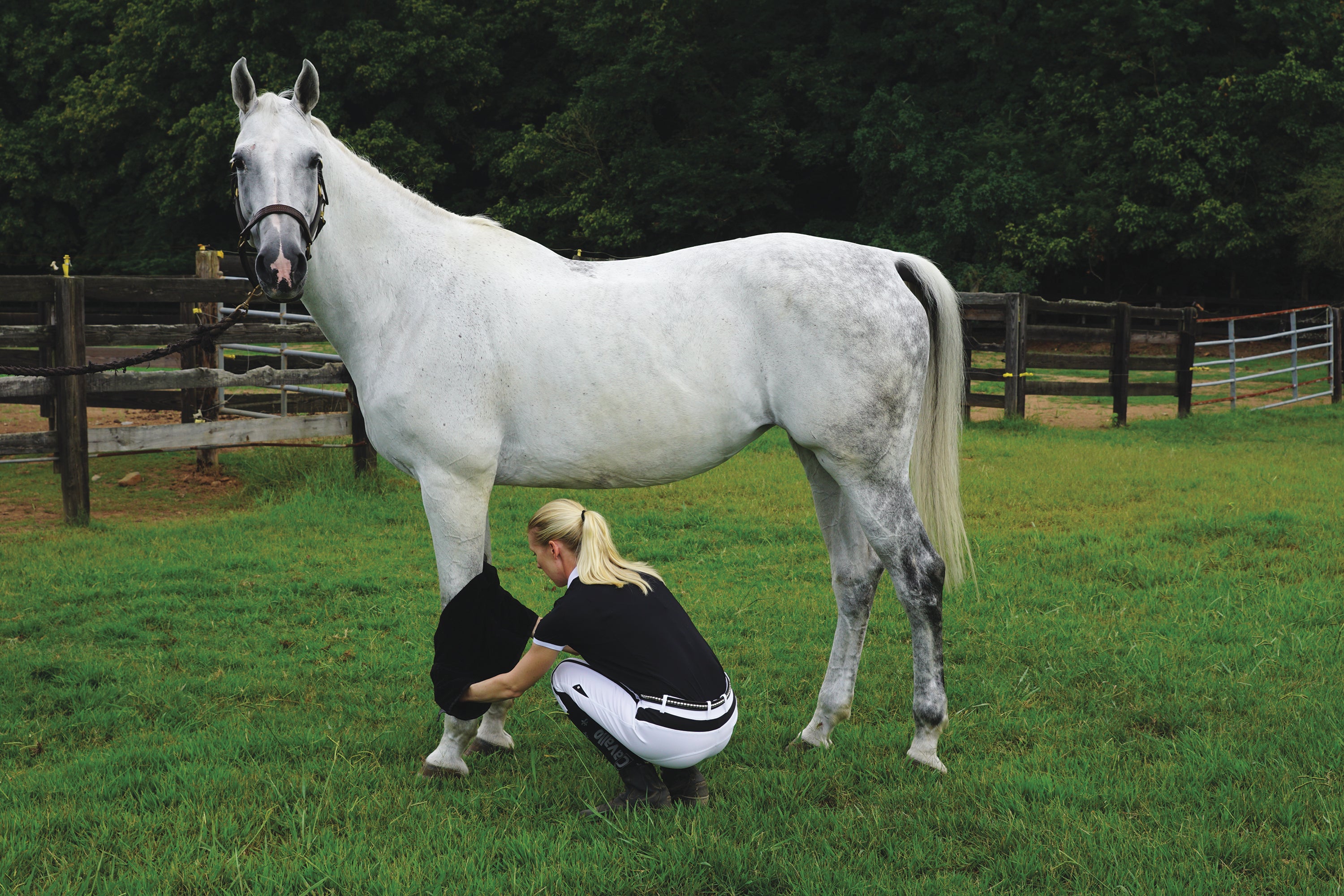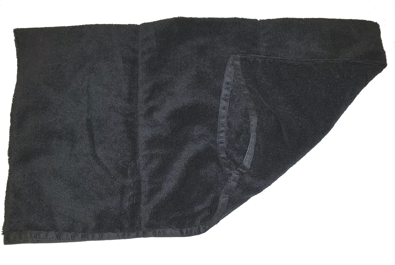 Dry your horse or dog super fast! The Supa Dry Towel delivers four times the absorbency of regular towels and has a plush, spa-like texture. A convenient sewn-in, glove-style hand pocket on both ends helps you keep the towel clean by preventing it from dragging or dropping on the ground as you groom your animal. Double needle side hems prevent fraying at the edges. 54" x 30". Black.