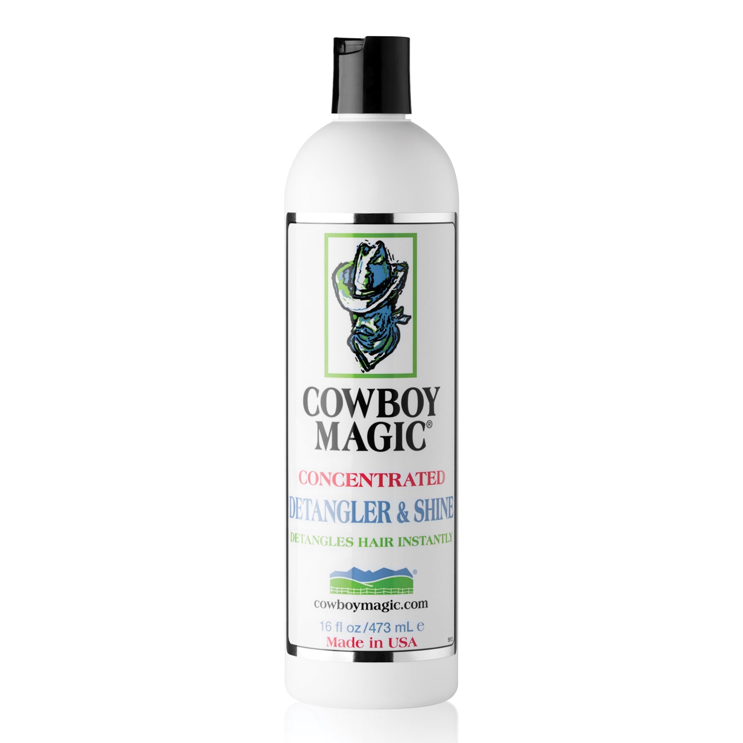 Cowboy Magic® Detangler & Shine is a concentrated, deep conditioning, leave-in detangler with silk protein added. It contains no drying water or alcohol and leaves hair manageable, lustrous and with long-lasting shine.