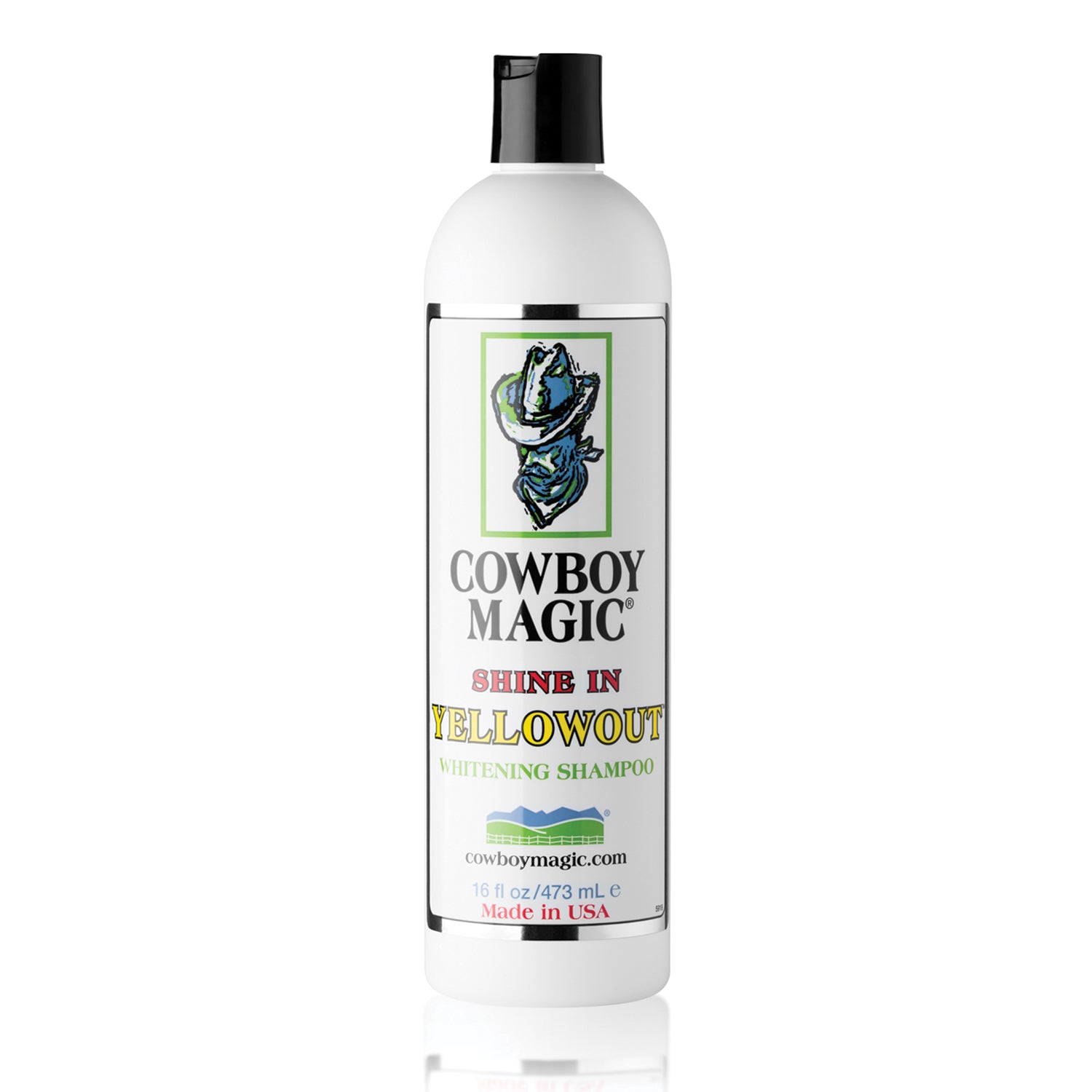 Neutralize yellow stains and brighten your horse's hair with Cowboy Magic® Shine in YellowOut™. Besides removing yellow stains, it gives dull horsehair a more brilliant sheen and leaves it silky, shiny and smelling good. Yellowout works well on every color of horse. Pt.