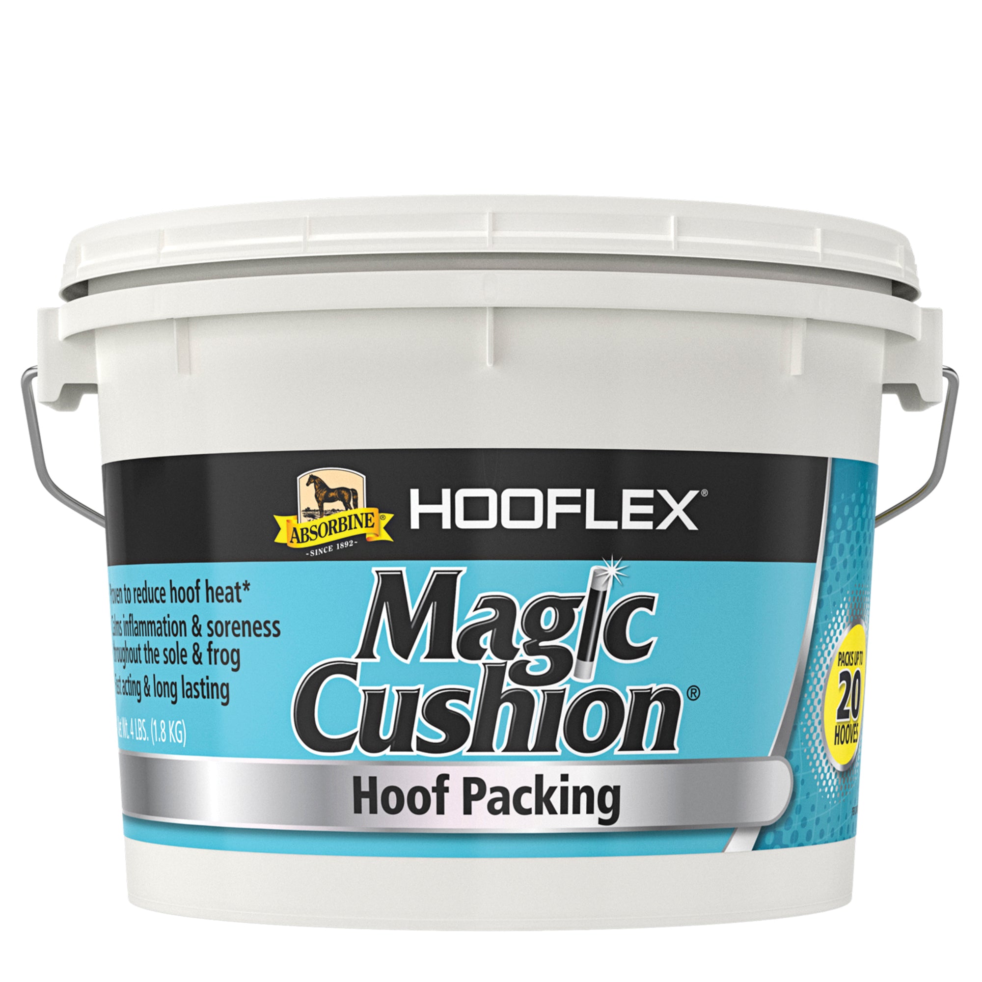 Magic Cushion® Hoof Packing is an anti-inflammatory and analgesic hoof treatment that helps reduce pain and heat resulting from concussion and trauma within the hoof structure. A natural formula that kills and prevents the growth of bacterial and fungal infections, Magic Cushion has been proven effective in providing relief from laminitis, white line disease, pedal osteitis, abscesses, navicular syndrome, sole bruising and post-trimming soreness.