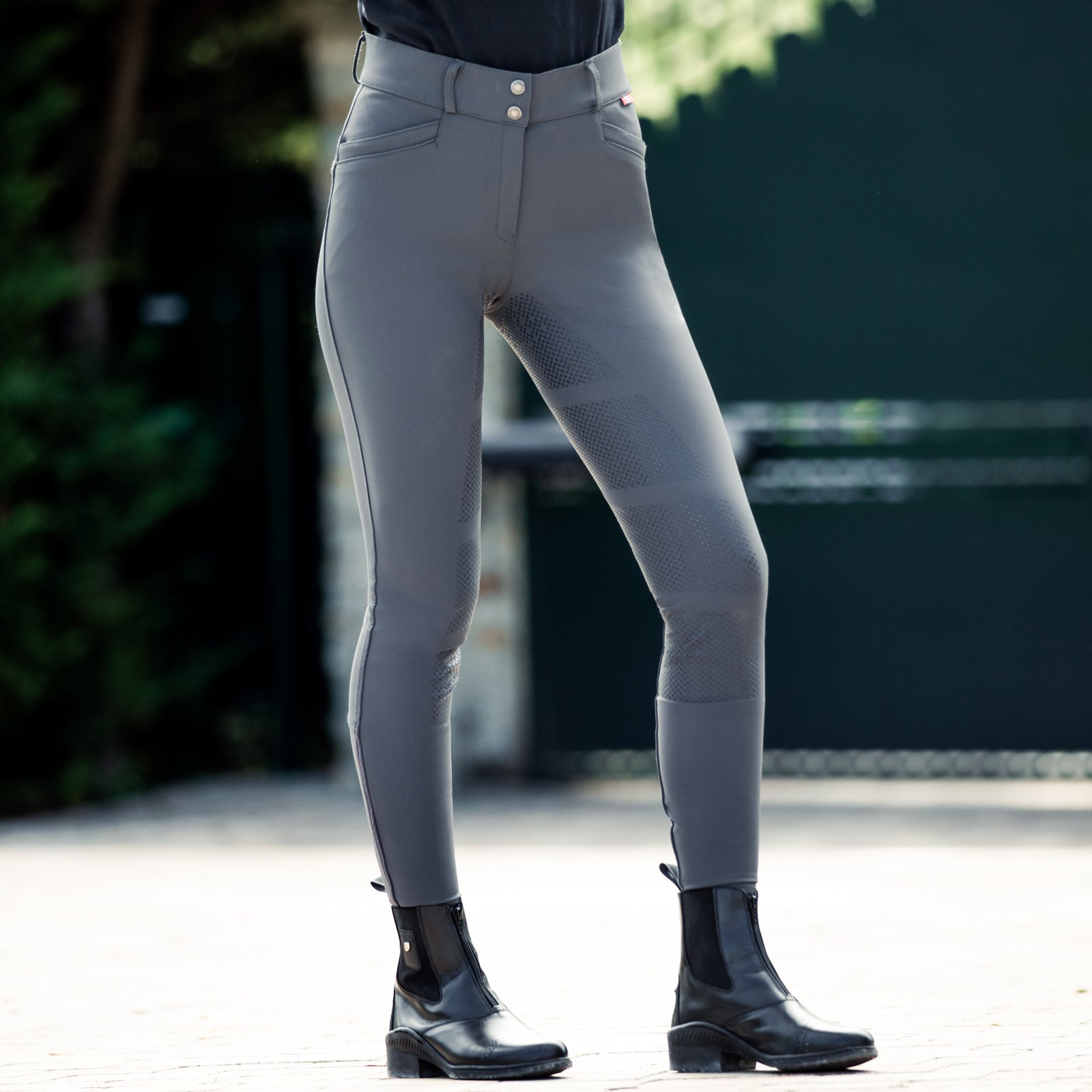 B Vertigo Patricia Silicone Full-Seat Breech will be a staple in your riding wardrobe. Made for everyday use, this high-waisted breech has a slimming design with a special front lining to give you more support where you need it. Four-way stretch fabric is breathable and dust-repellent; silicone print seat offers supreme comfort and security. Complete with front pockets.