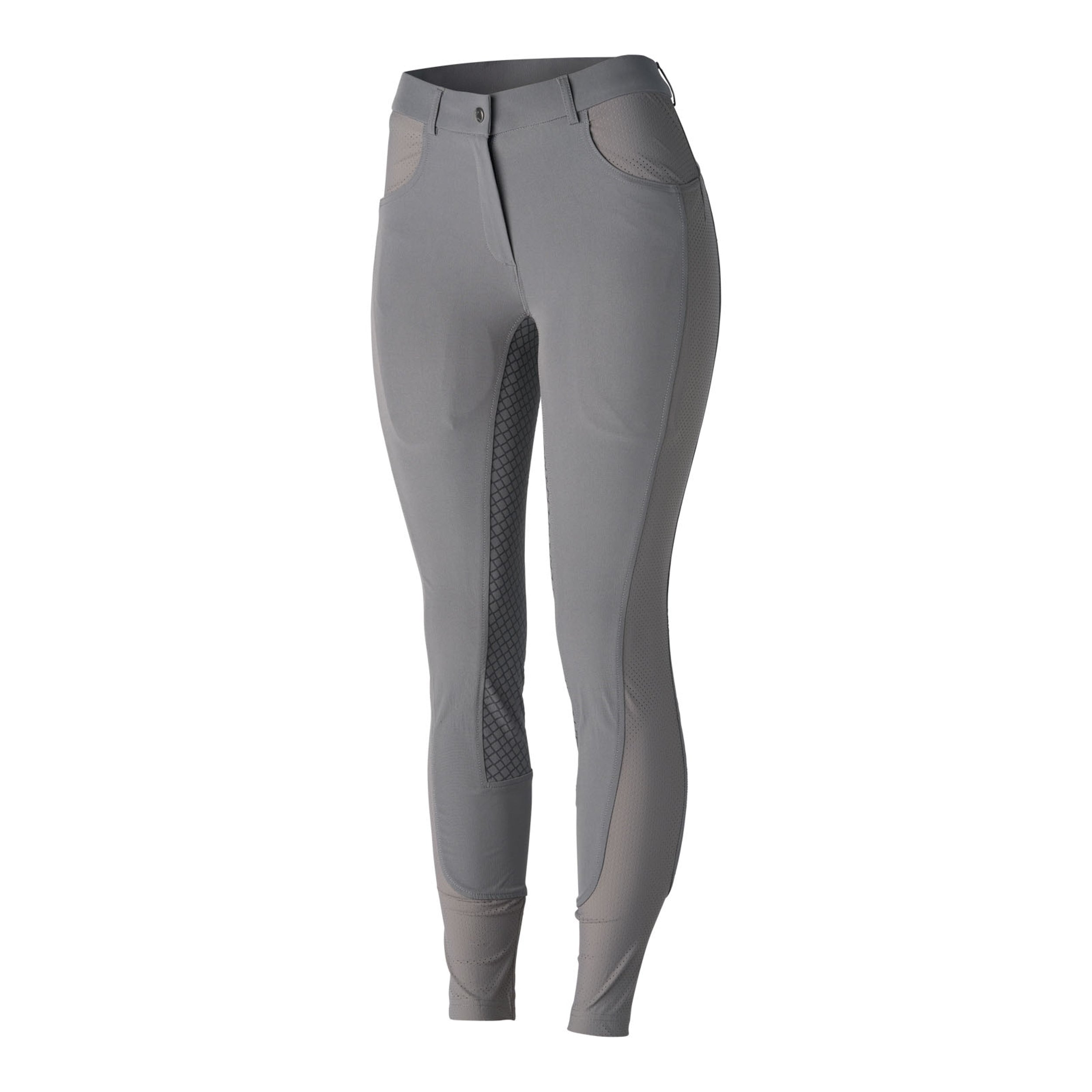 The Ladies’ Limited Edition Saphira Ventilated Full-Seat Breech by Horze is one of the most breathable breeches you will find. This hot weather staple is made of lightweight stretch fabric with breathable laser-cut mesh fabric on the sides, leg bottoms, pockets and back belt loop. The design helps keep you from overheating by maximizing ventilation. A silicone print full-seat and metal brand detail finish this breech.