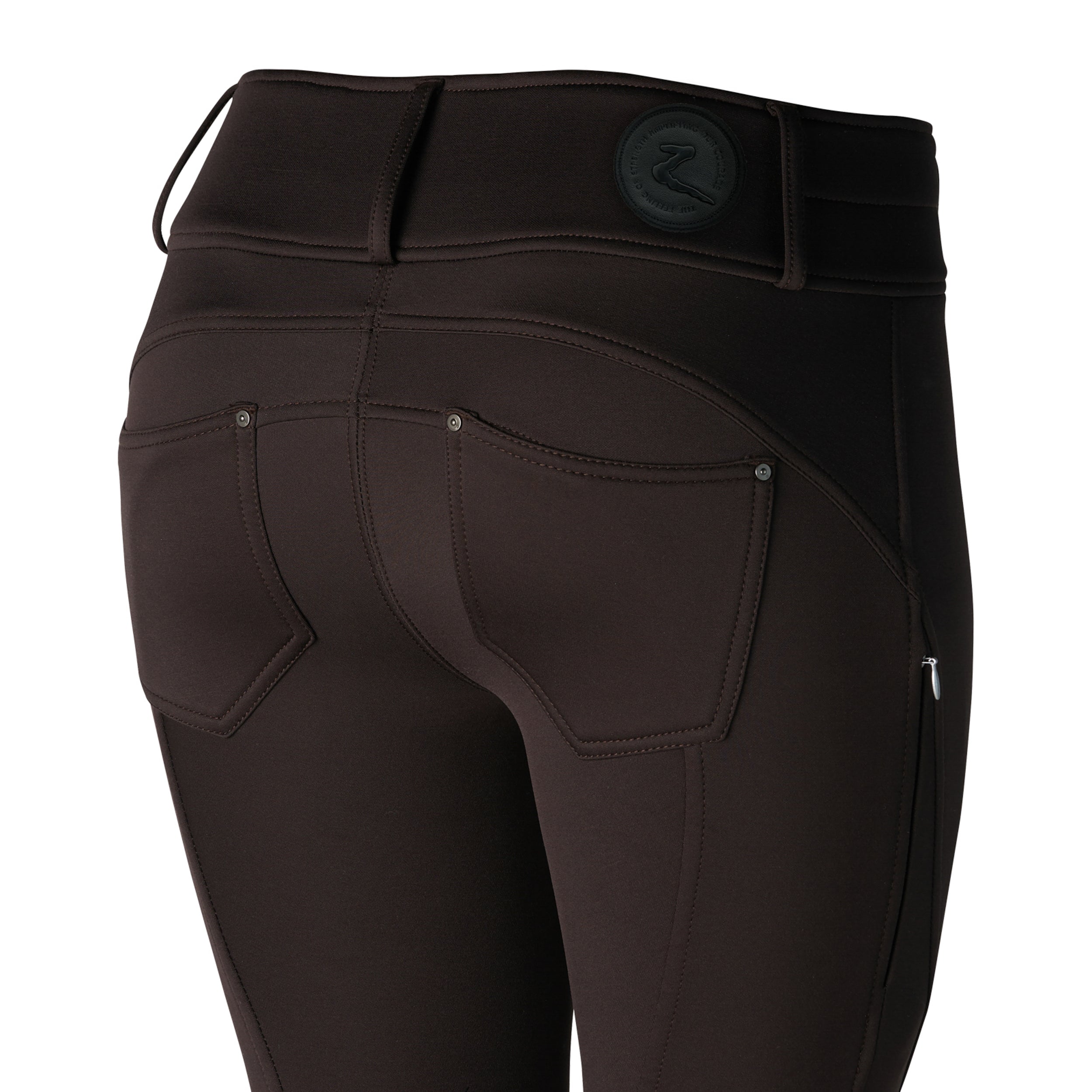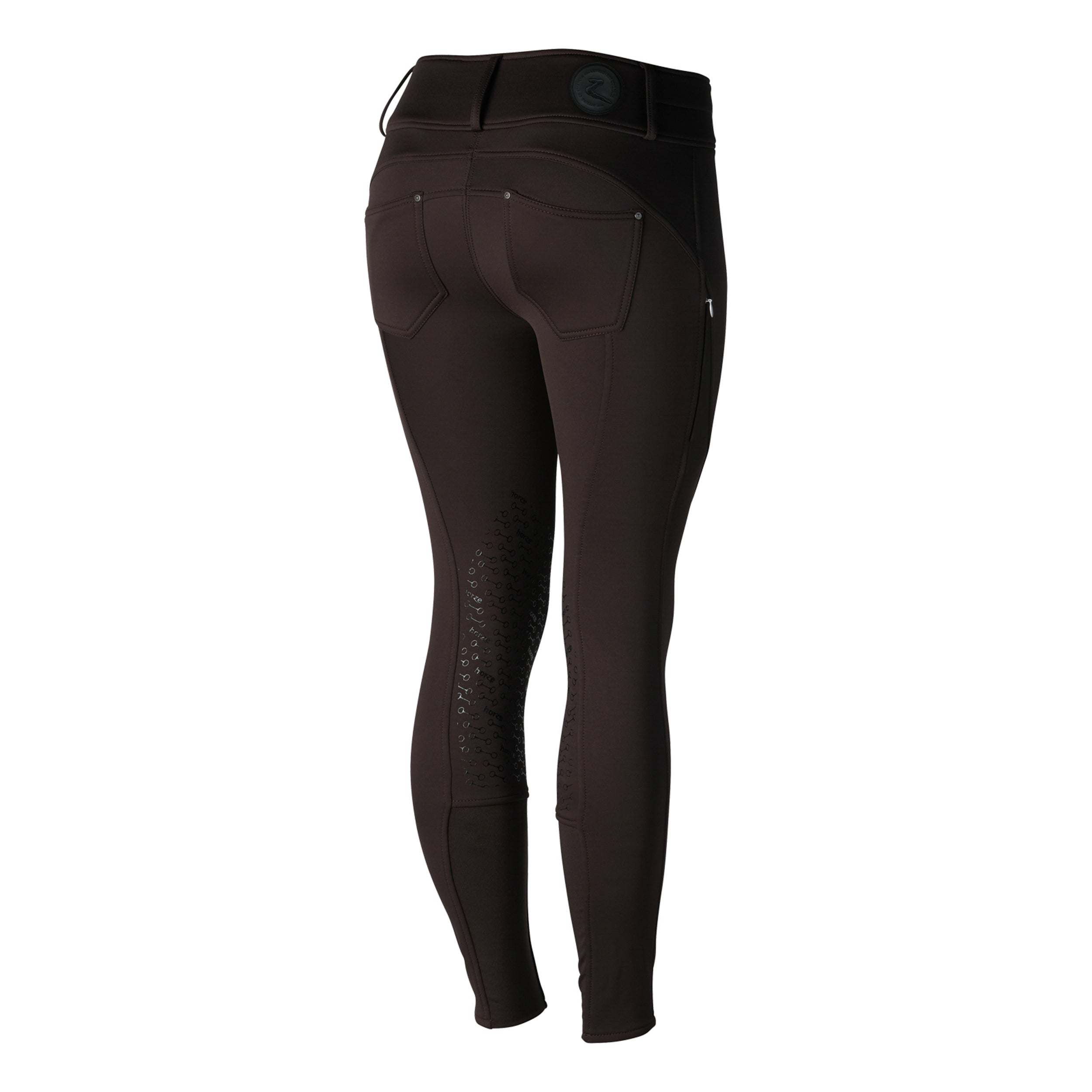 PRODUCT DESCRIPTION: Horze Ladies’ Rhea Knee-Patch Thermo Breech with Back Pockets