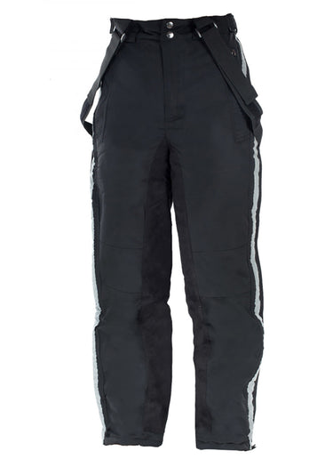Horze Winter Rider Pants have a warm, thick, soft parka-like lining to make your cold weather riding excursions fun and enjoyable. This full-seat winter riding breech has reflective side piping, detachable suspenders and a soft waistband. Side zippers allow easy on/off. Water-repellent material keeps wet out and warmth in.