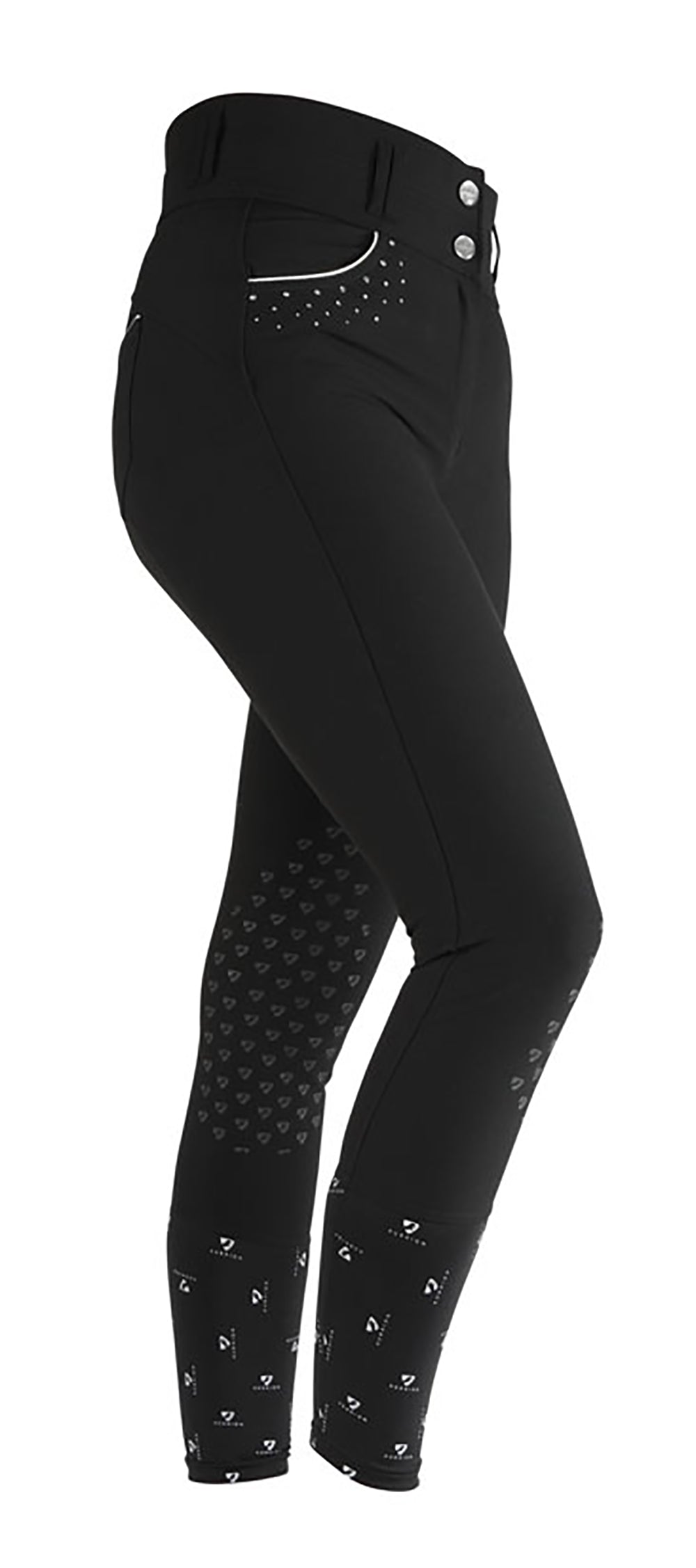 Shires Aubrion Oakwood Breech has diamanté stud detail to add a touch of sparkle to your ride. This flattering, high-waisted ladies’ breech has silicone knee grips for hold and stretch lower leg cuffs that fit smoothly inside boots or half chaps.