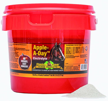 Free from sugars, fillers and artificial colors, Finish Line® Apple-A-Day™ Electrolyte powder for horses helps replenish electrolytes and minerals lost in daily activities such as sweating, urination and defecation. Apple-A-Day is made in the USA and designed to encourage healthy water consumption and appetite and to support healthy nerve and muscle function.