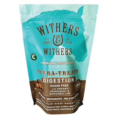 Withers & Withers Sugar-Free Peppermint/Marshmallow Nutra-Treats for horses or ponies deliver a taste sensation while helping to support digestion and respiration. These treats contain organic peppermint leaf, which can soothe heartburn, help prevent colic and help control diarrhea. It can also help protect and heal respiratory, urinary and digestive systems. Organic marshmallow root can soothe mucous membranes in the horse’s stomach and lungs and can also help prevent and stop coughs. Appropriate for insulation resistant horses.