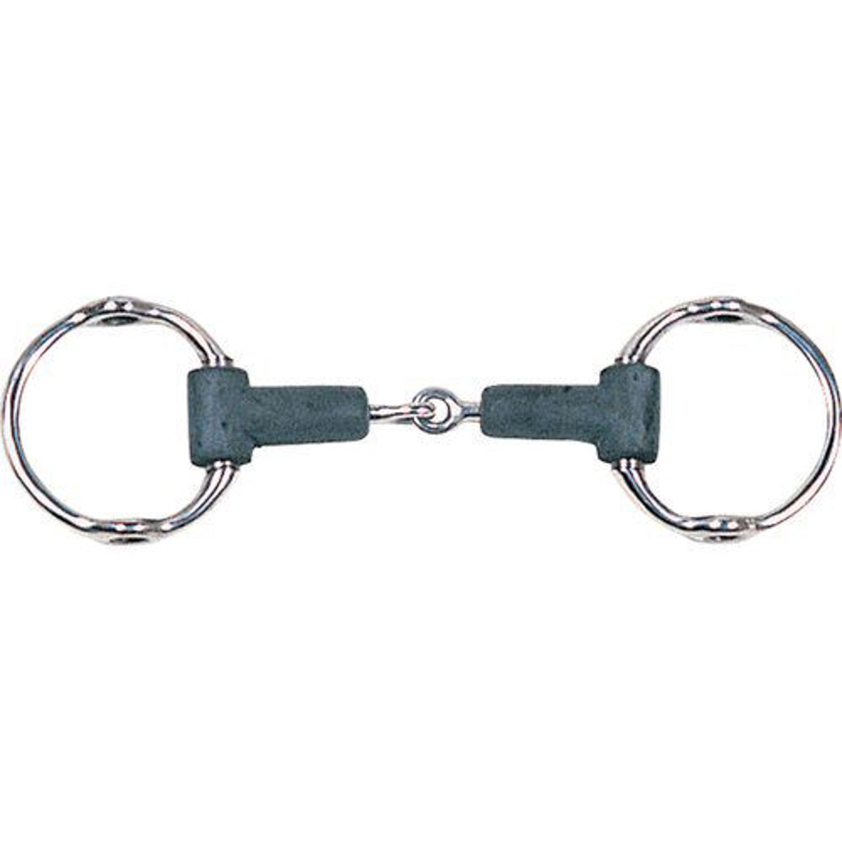 The Rubber Gag Bit combines a soft, rubber-covered mouthpiece with gag style cheeks. It's made with a stainless steel core and rings with holes for attaching gag cheeks. Gag bits work on leverage, as needed.