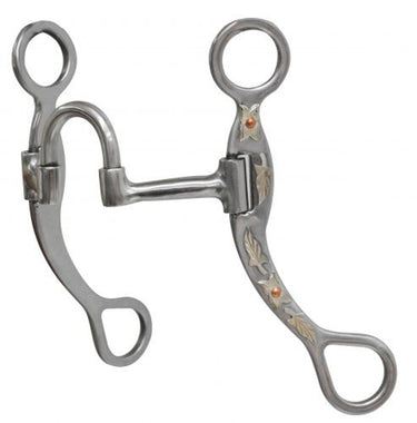 Showman® Medium Swivel Port Mouth Western Bit features 7 1/2" stainless steel shanks accented with a leaf overlay. The 5" stainless steel swivel mouth has a 2" swivel port.
