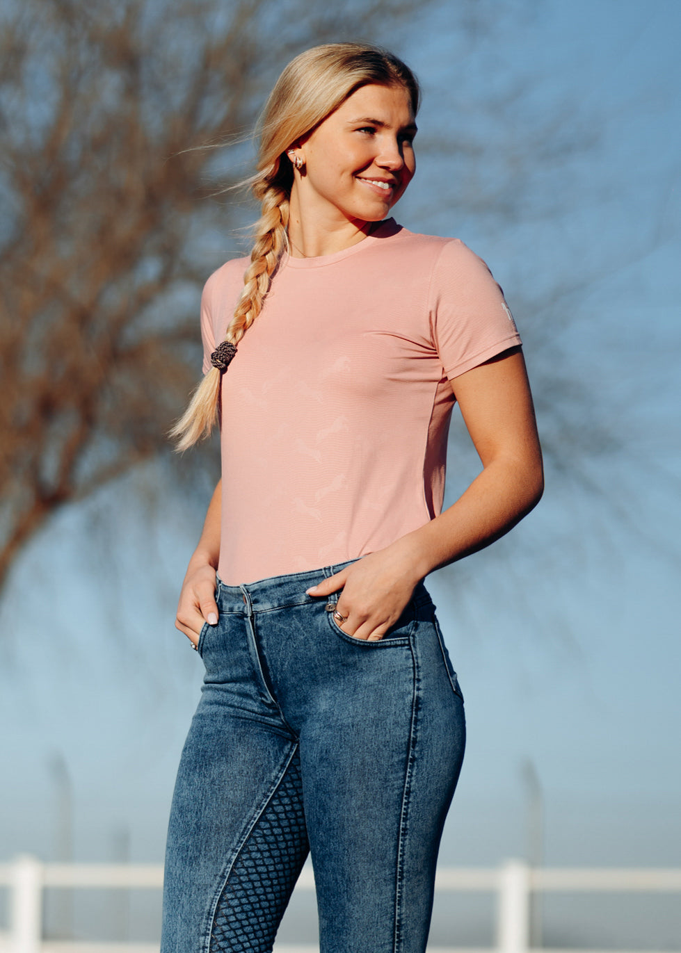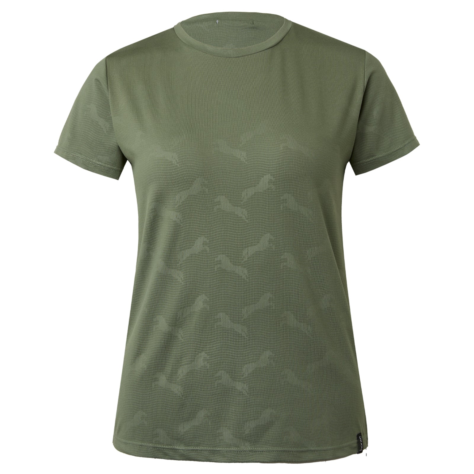 PRODUCT DESCRIPTION: Horze Ladies’ Nina Horse Print Technical Tee