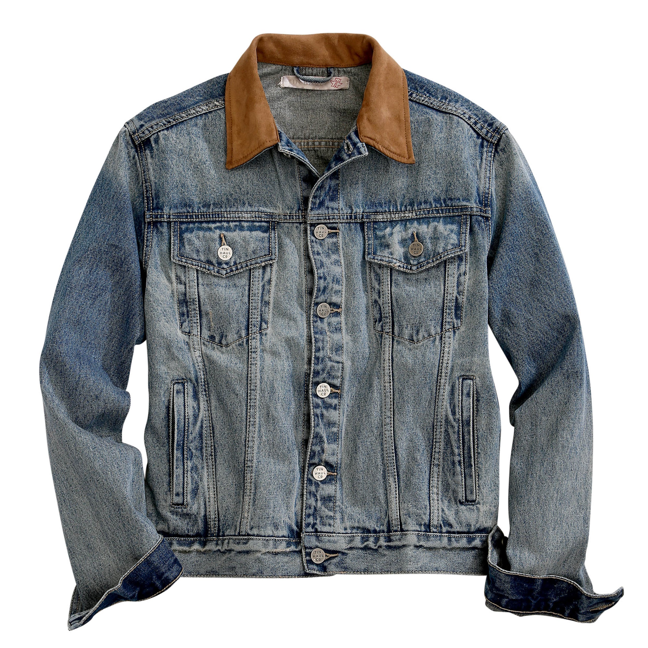 PRODUCT DESCRIPTION: Tin Haul Men’s Unlined Jean Jacket with Suede Collar