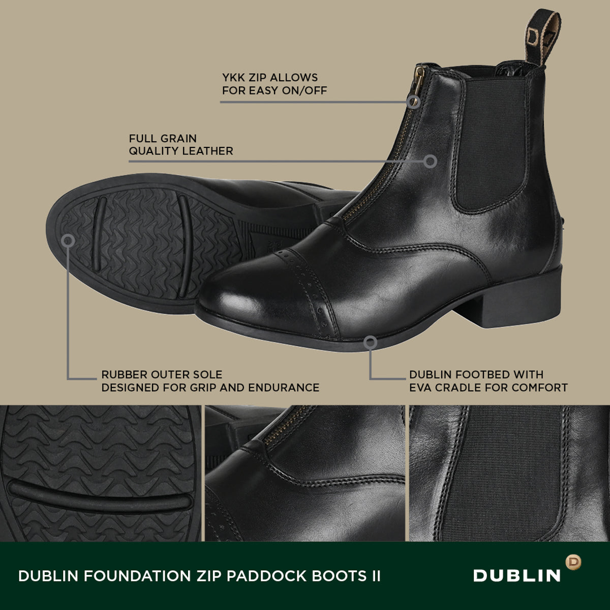 PRODUCT DESCRIPTION: Dublin® Ladies’ Foundation Zip Paddock Boots II
