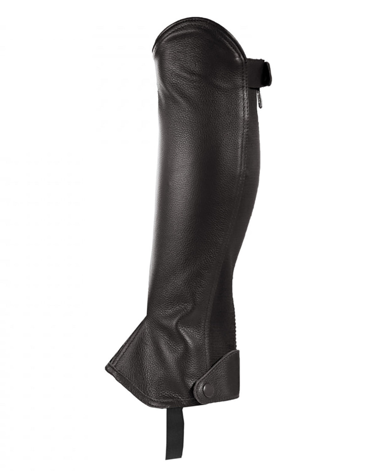 PRODUCT DESCRIPTION: Horze Kids’ Synthetic Leather Half Chaps with Elastic