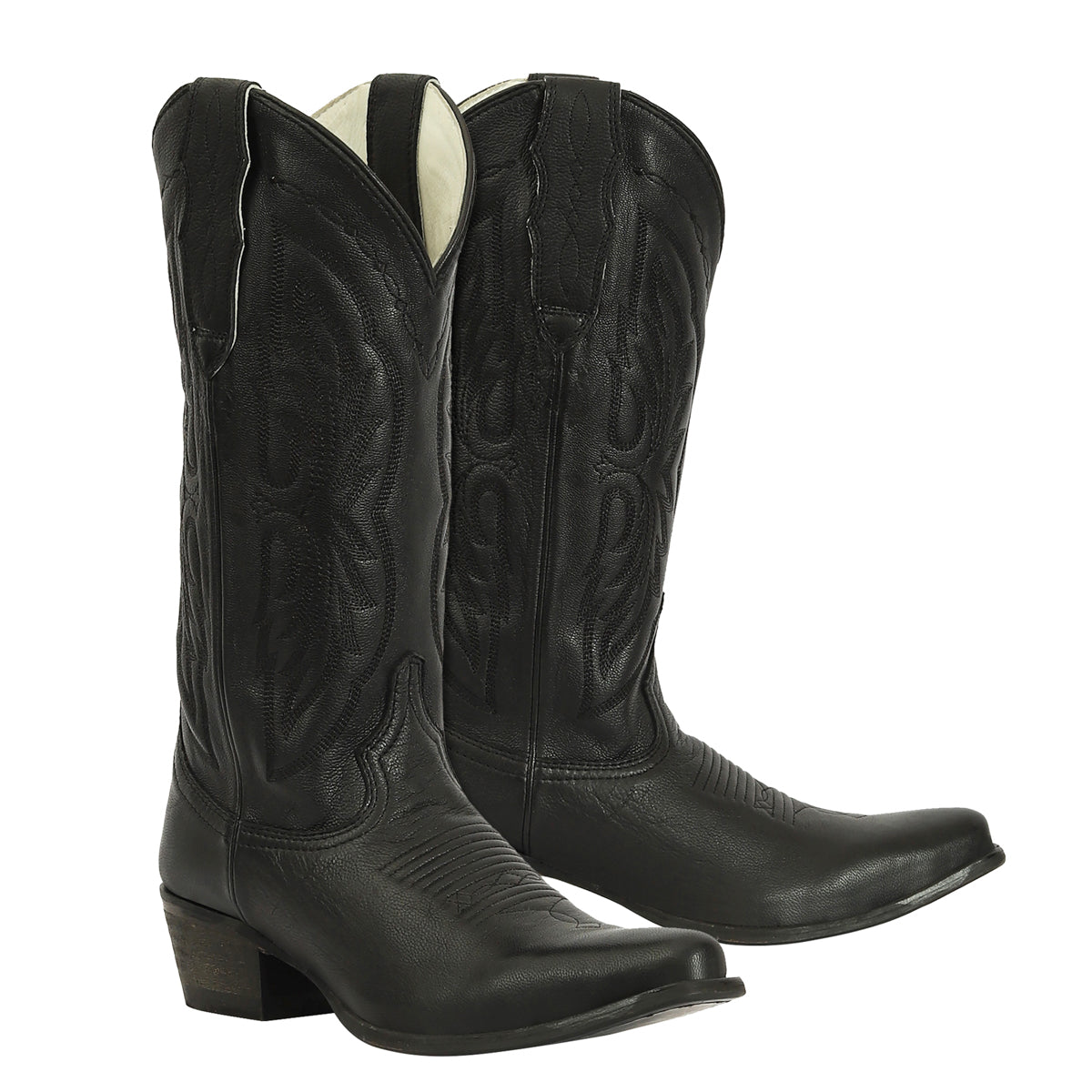 TuffRider® Ladies’ Cowtown Mid-Height Embroidered Leather Snip Toe Western Boots offer a seamless combination of comfort and fashion.