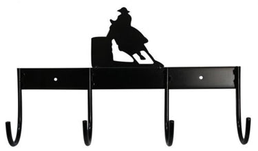 4-Hook Flat Tack Bar with Barrel Horse Silhouette offers space-saving storage with style.
