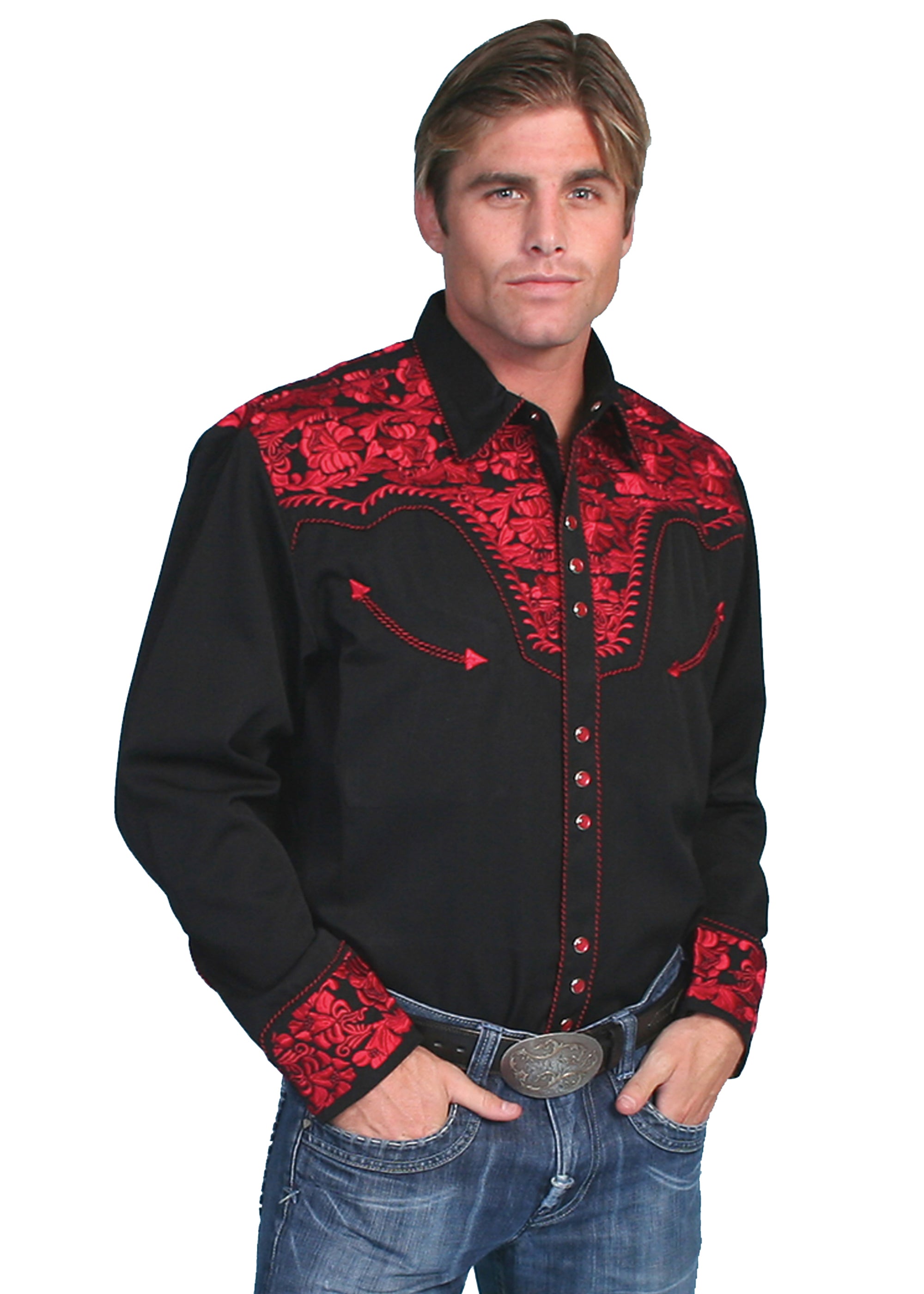PRODUCT DESCRIPTION: Scully Leather Men’s Floral Tooled Embroidery Shirt