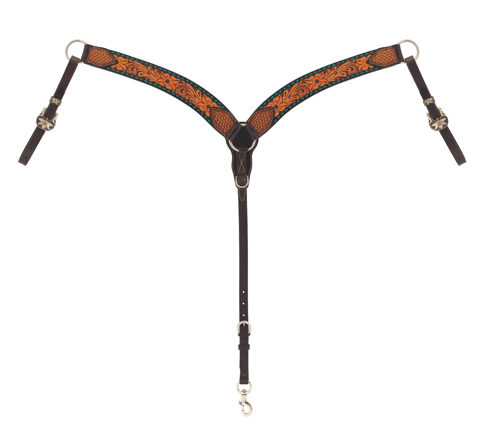 PRODUCT DESCRIPTION: Weaver Leather® Turquoise Cross Breast Contoured Floral Buckstitch Collar