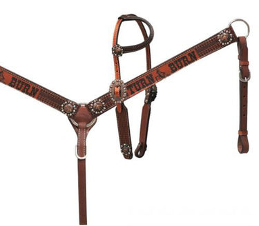 PRODUCT DESCRIPTION: Showman® Copper Shimmer Leather Turn & Burn Headstall & Breast Collar Set