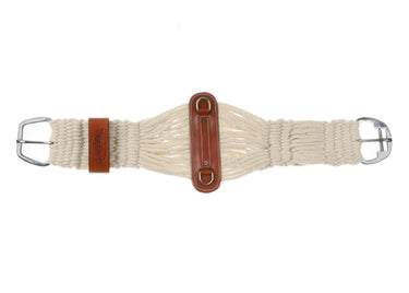 Showman® Mohair String Roper Girth with Stainless Steel Roller Buckle features mohair natural blend strings with an Argentina leather center. Stainless steel D-rings on each side. Strands are woven on both sides to help support the strands of the girth and provides more air flow. Stainless Steel roller buckle design.