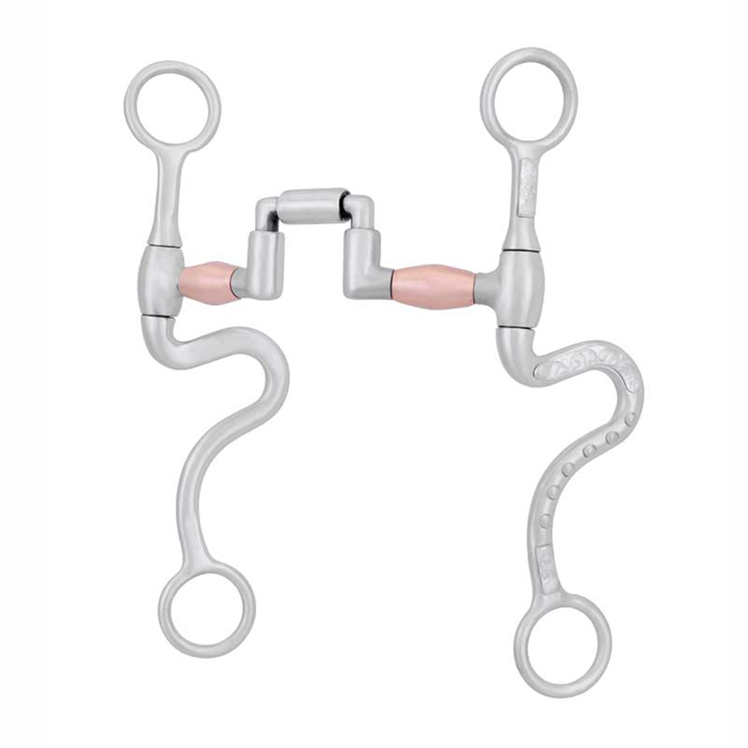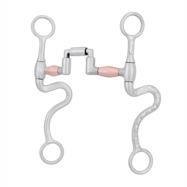 The Metalab FG Square Port Correctional Bit is Level Two and made of brushed stainless steel. Mouthpiece is 5" correctional with copper barrels. Cheeks are 8 1/4" long S-shanks with trim and dots.