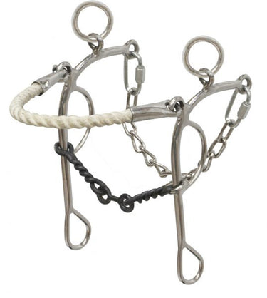 PRODUCT DESCRIPTION: Showman® Stainless Steel Dog Bone Rope Nose Combo Hackamore/Gag