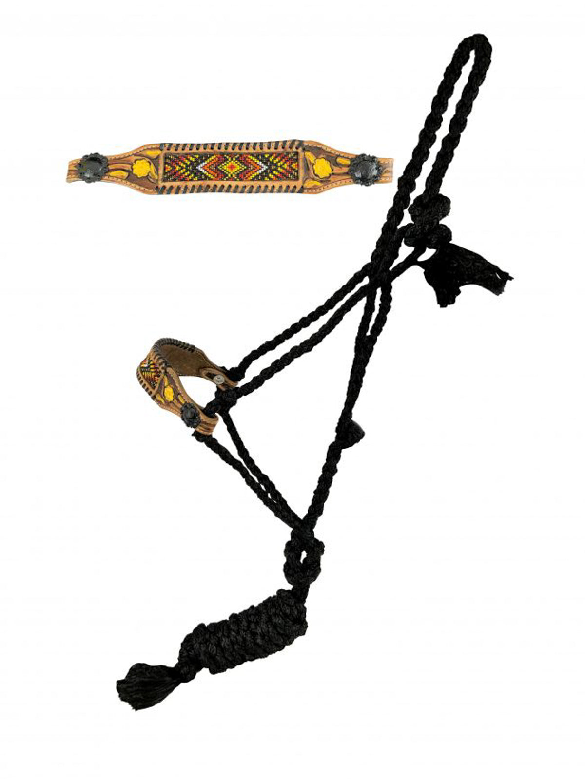 Showman® Woven Black Nylon Mule Tape Halter has a noseband covered in a seed-bead design and comes complete with lead.