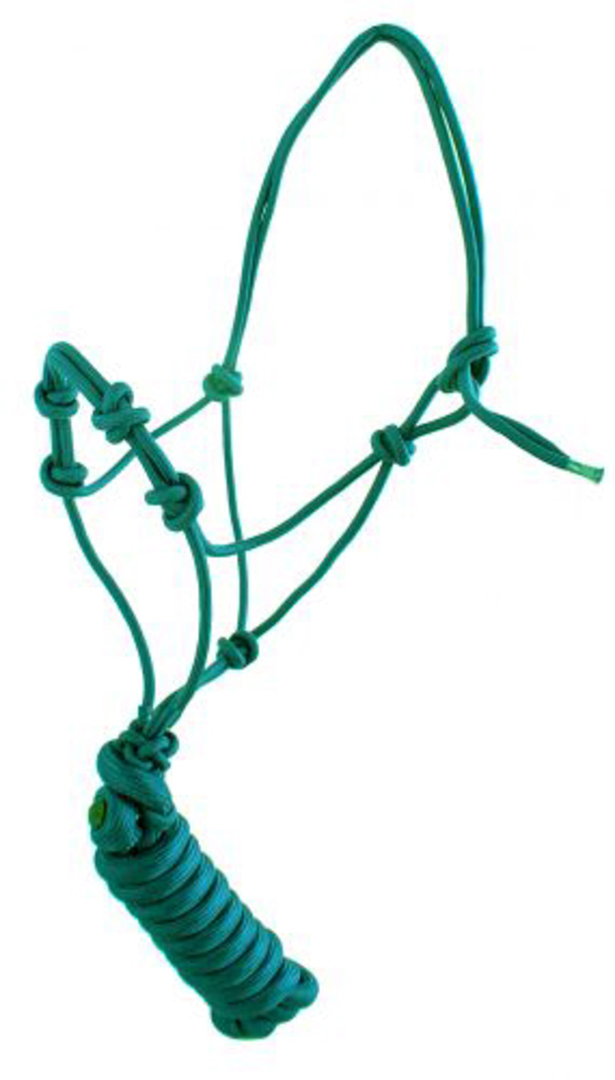 Yearling Size Four-Knot Cowboy Knot Training Halter with Lead uses pressure points to help the horse respond in groundwork and handling.