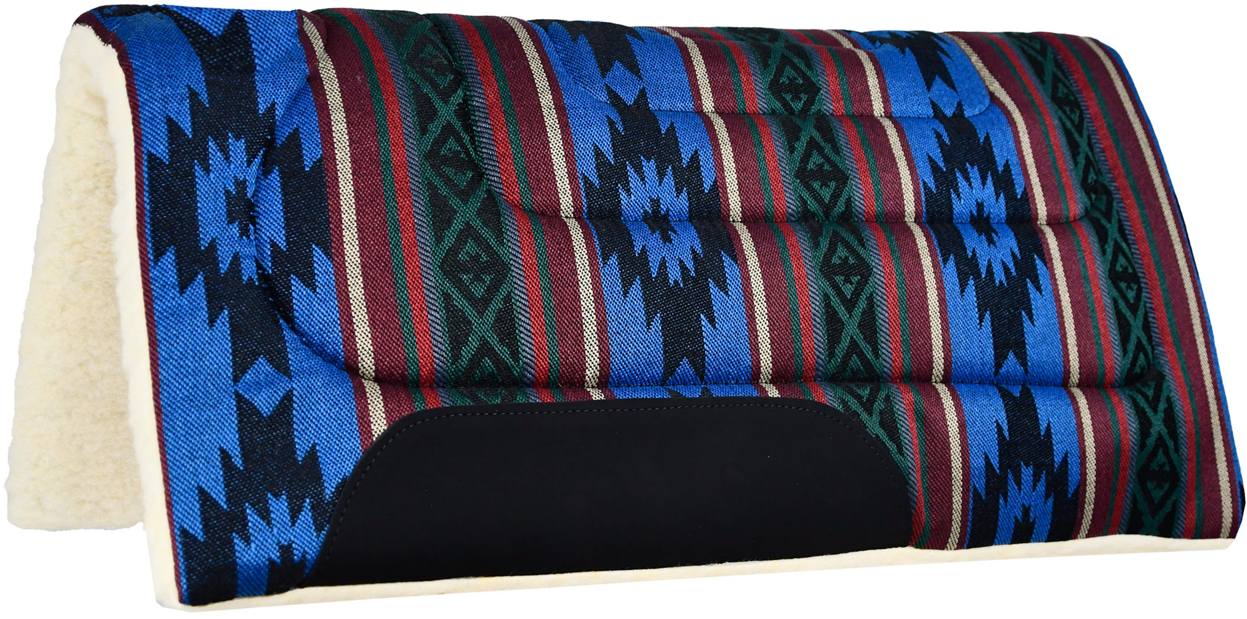 Mustang Herculon Pad with Fleece Bottom has a herculon top and maize fleece bottom. Will not mat or bunch up. Durable leather for wear areas. Brush or rinse with water and air dry.