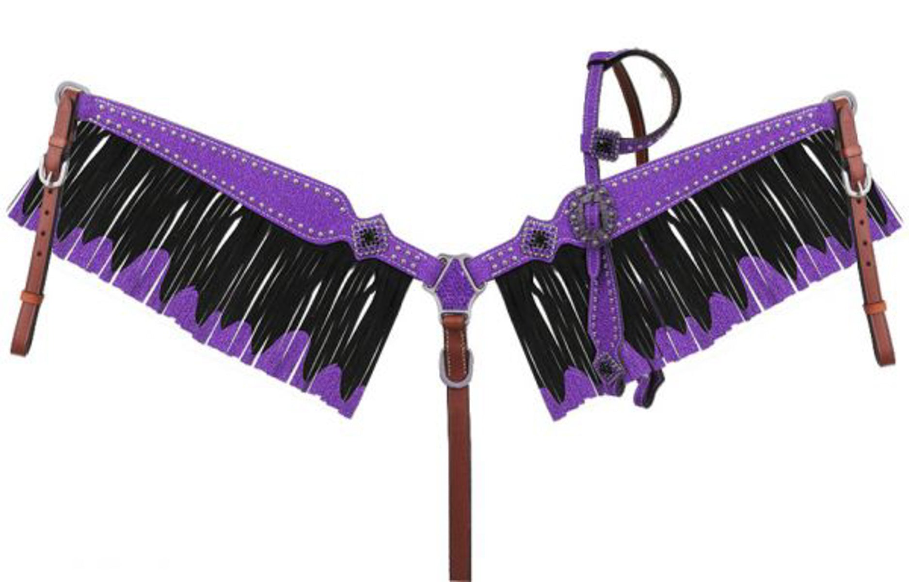 PRODUCT DESCRIPTION: Showman® Glitter Overlay Leather Headstall, Reins & Breast Collar Set