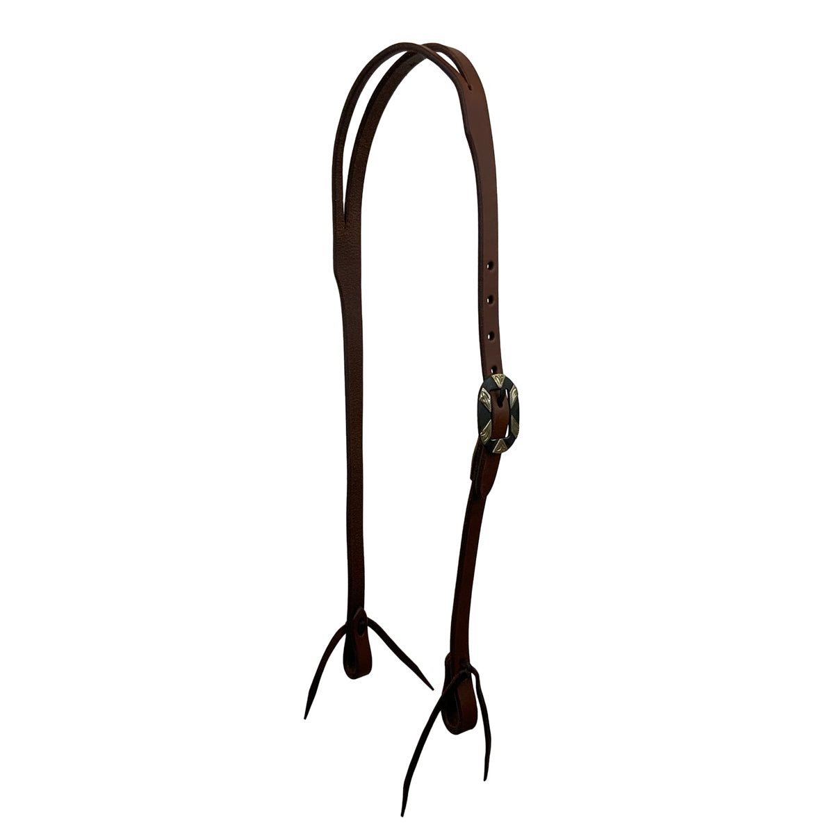 PRODUCT DESCRIPTION: Showman® Oiled Harness Leather Split-Ear Headstall with Antique-Design Buckle