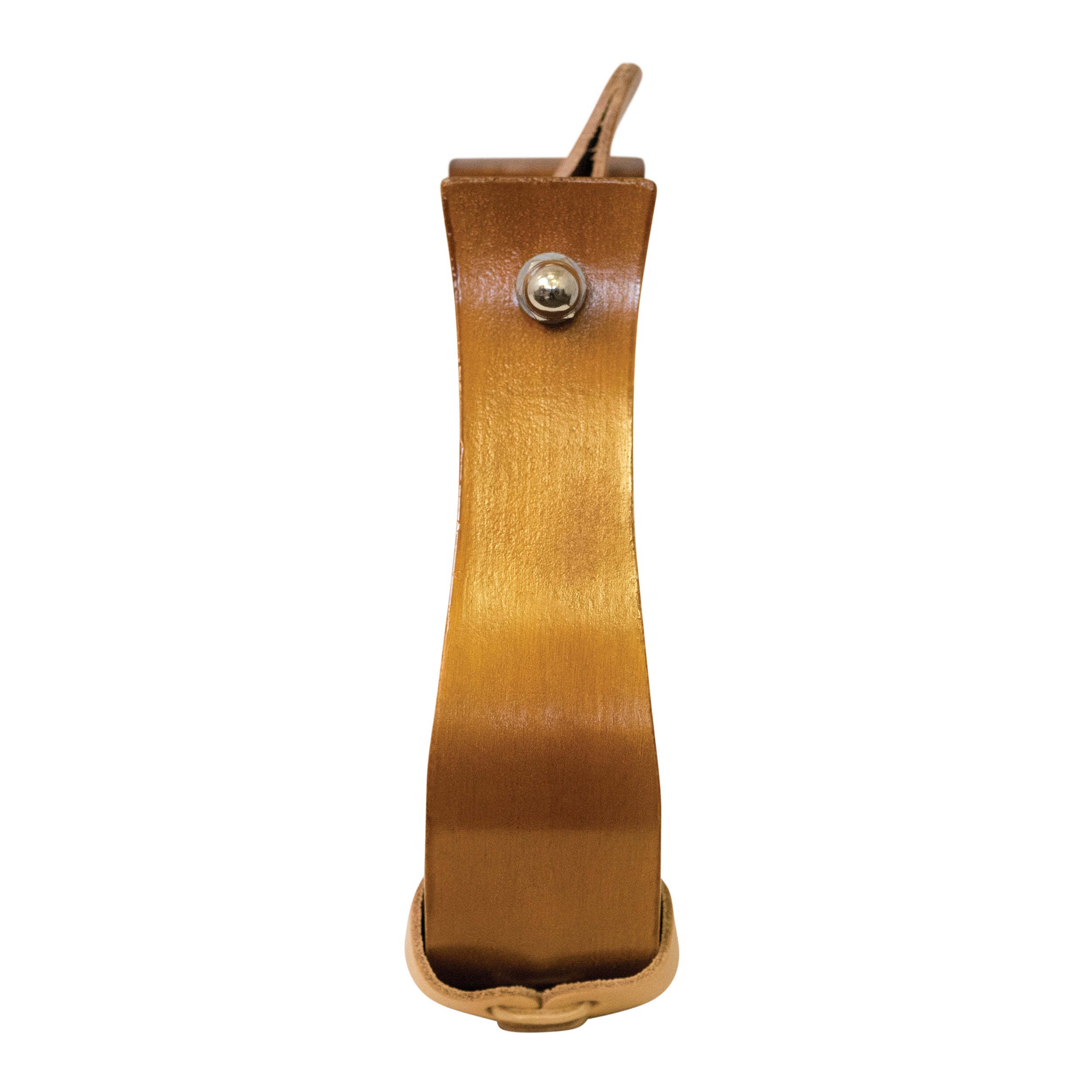 The Equi-Sky 2 1/2" Wooden Visalia Stirrup has an open neck and leather wrapped foot.
