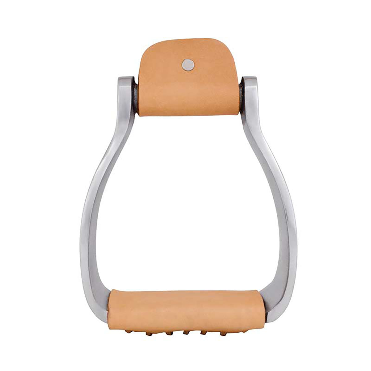 The Equi-Sky 2 1/4" Aluminum Offset Stirrup is lightweight, versatile and comfortably shaped Western stirrup with leather-wrapped foot.